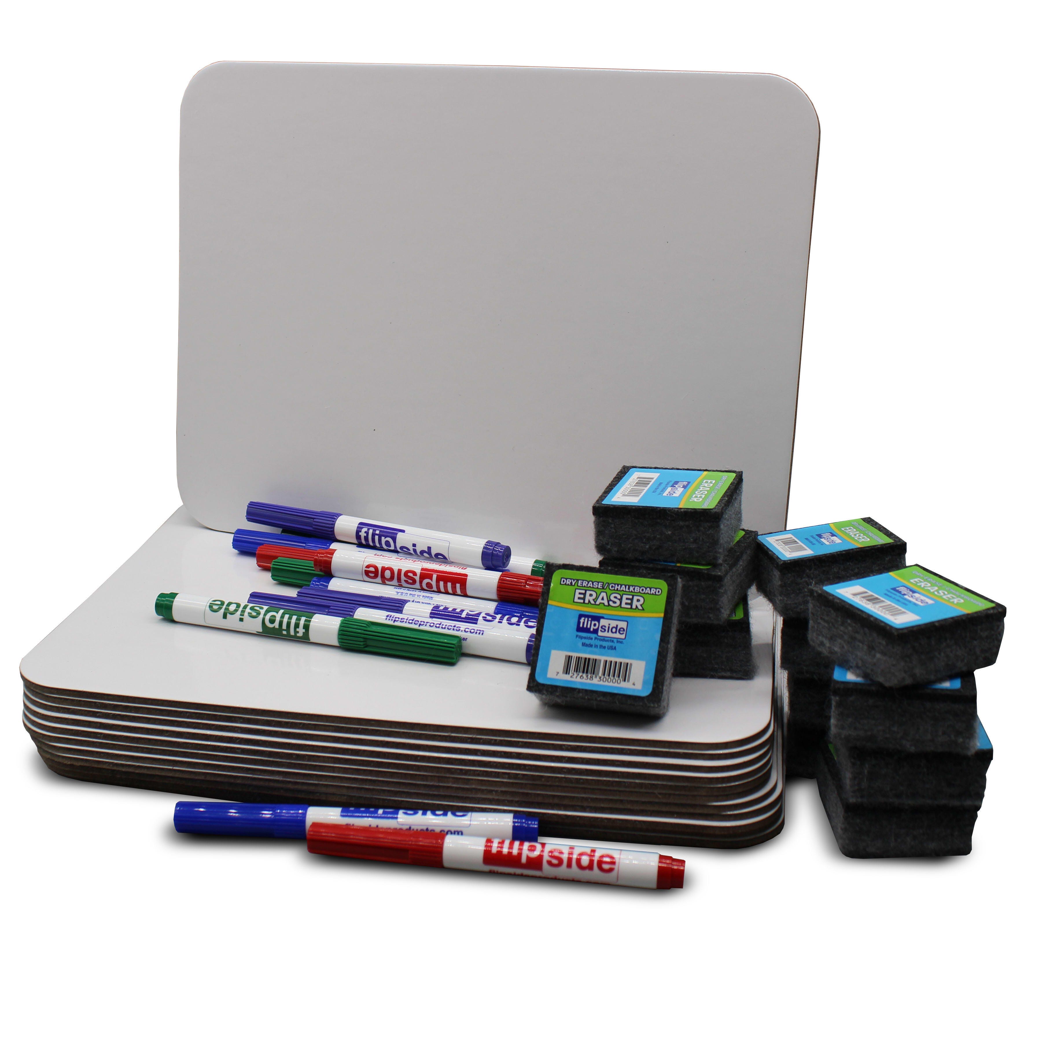 Flipside Dry Erase Magnetic Boards Classroom Set with Erasers and Assorted Markers, 9 x 12 Inches, Set of 36 Pieces