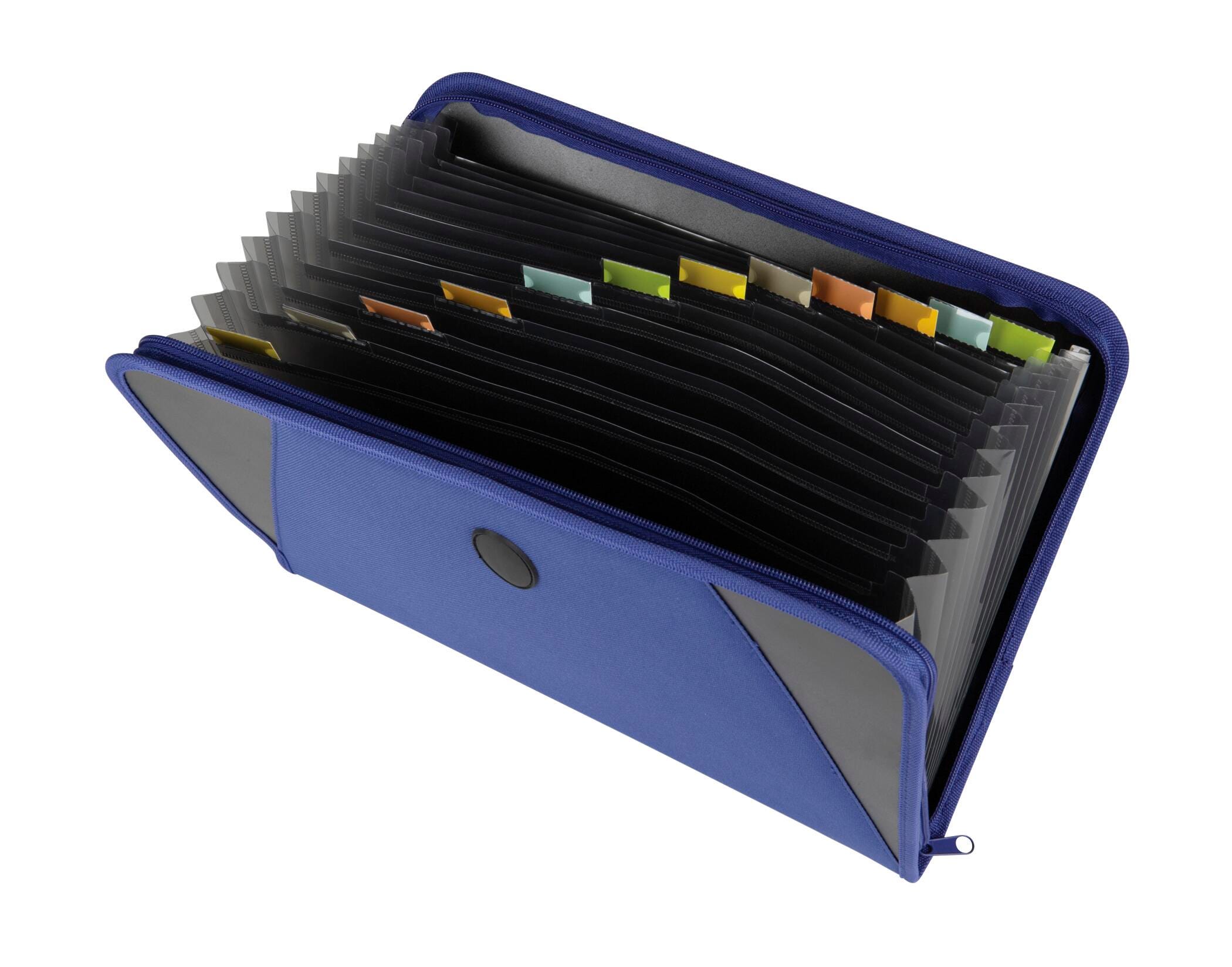 C-Line 13-Pocket expanding file keeps documents organized and easy to access. Zipper closure keeps materials safe and secure. All 13 pockets inside expand to hold important letters and documents; each pocket also includes tabbed dividers with customizable, color-coded inserts. Full expanding file holds up to 300 documents that are 8-1/2 x 11 inches each.