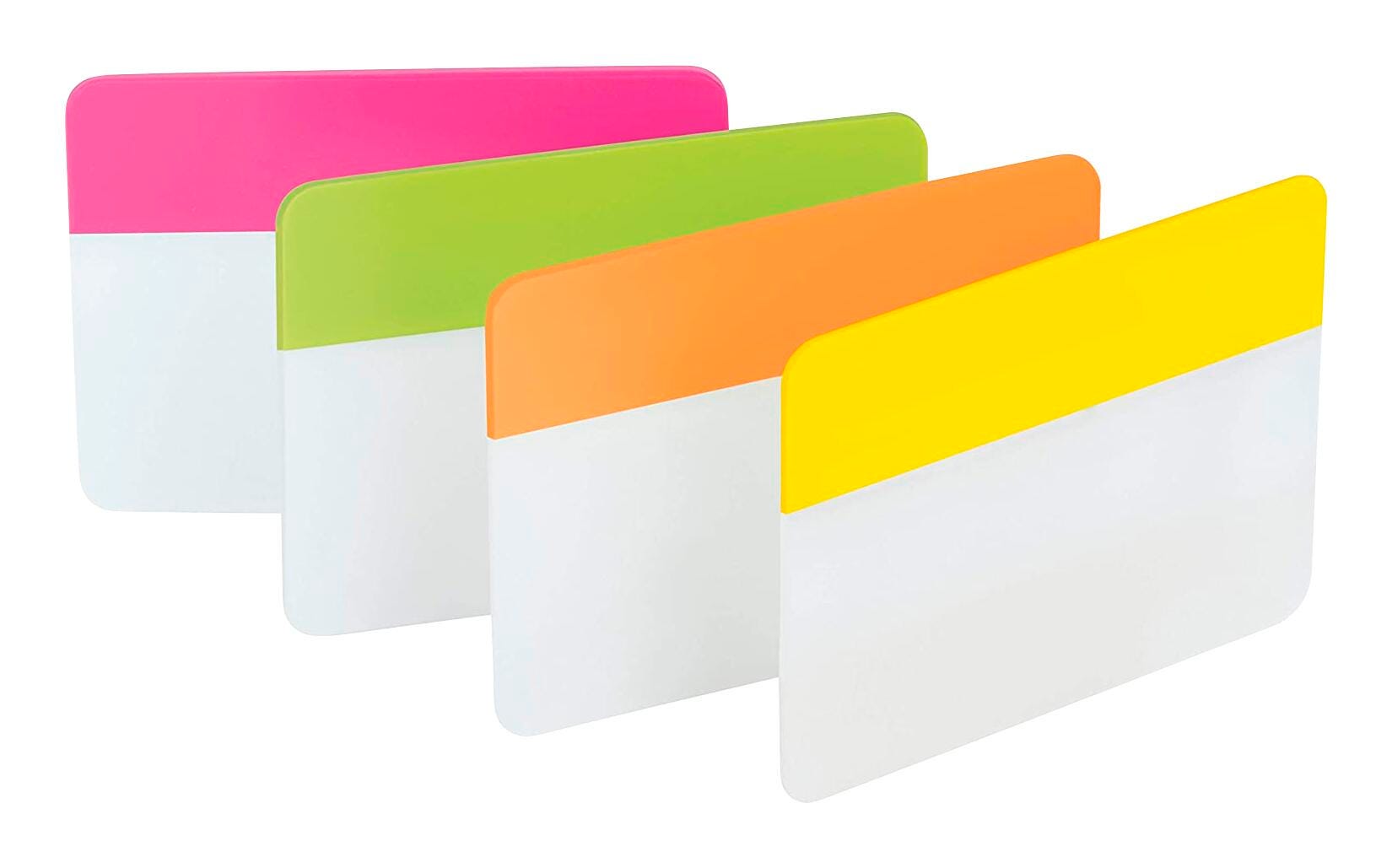 Post-it Filing Tabs, 2 Inches, Flat, Assorted Bright Colors, Set of 24