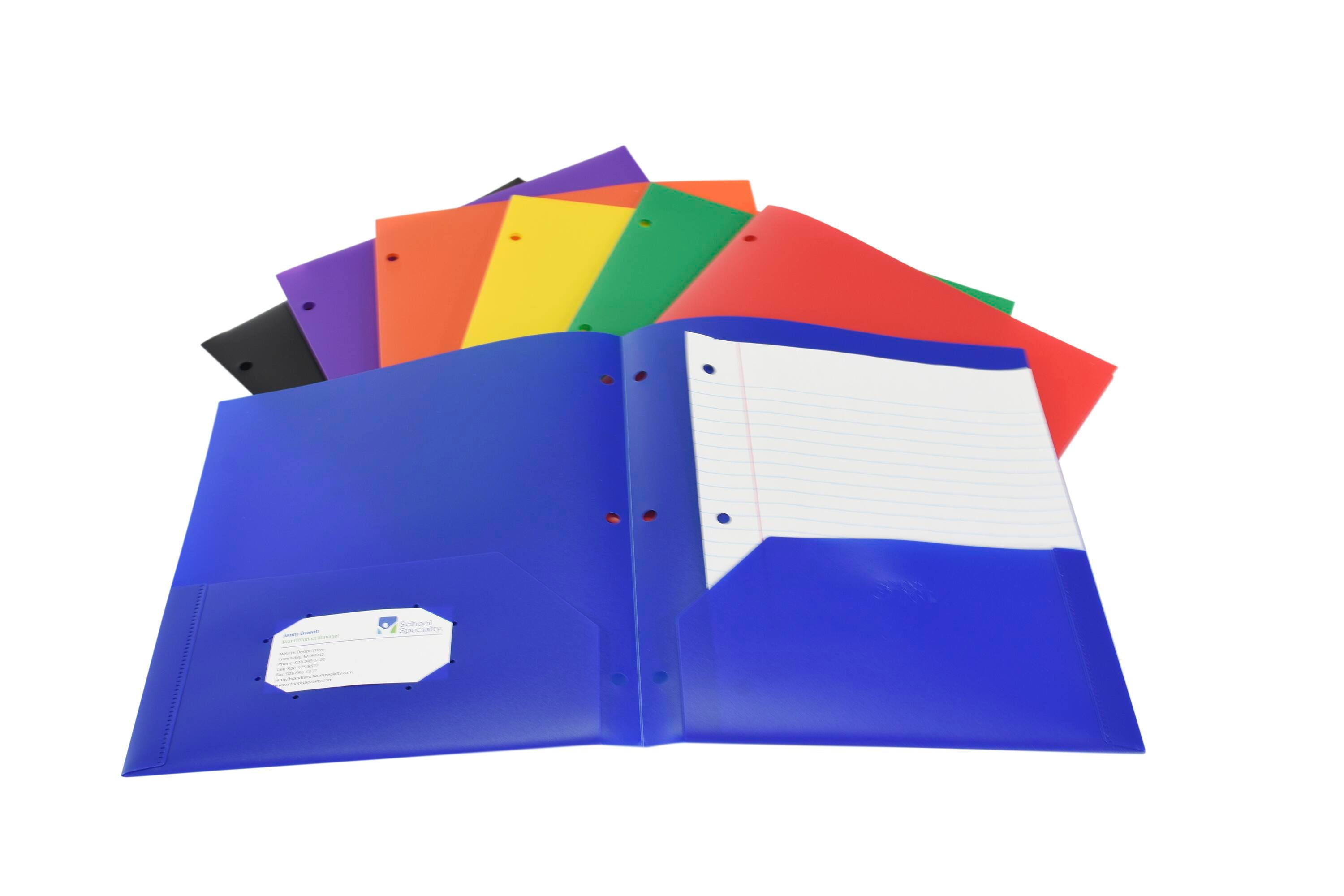 Heavyweight polypropylene pocket folders are easy to clean and resist tearing for long-lasting use