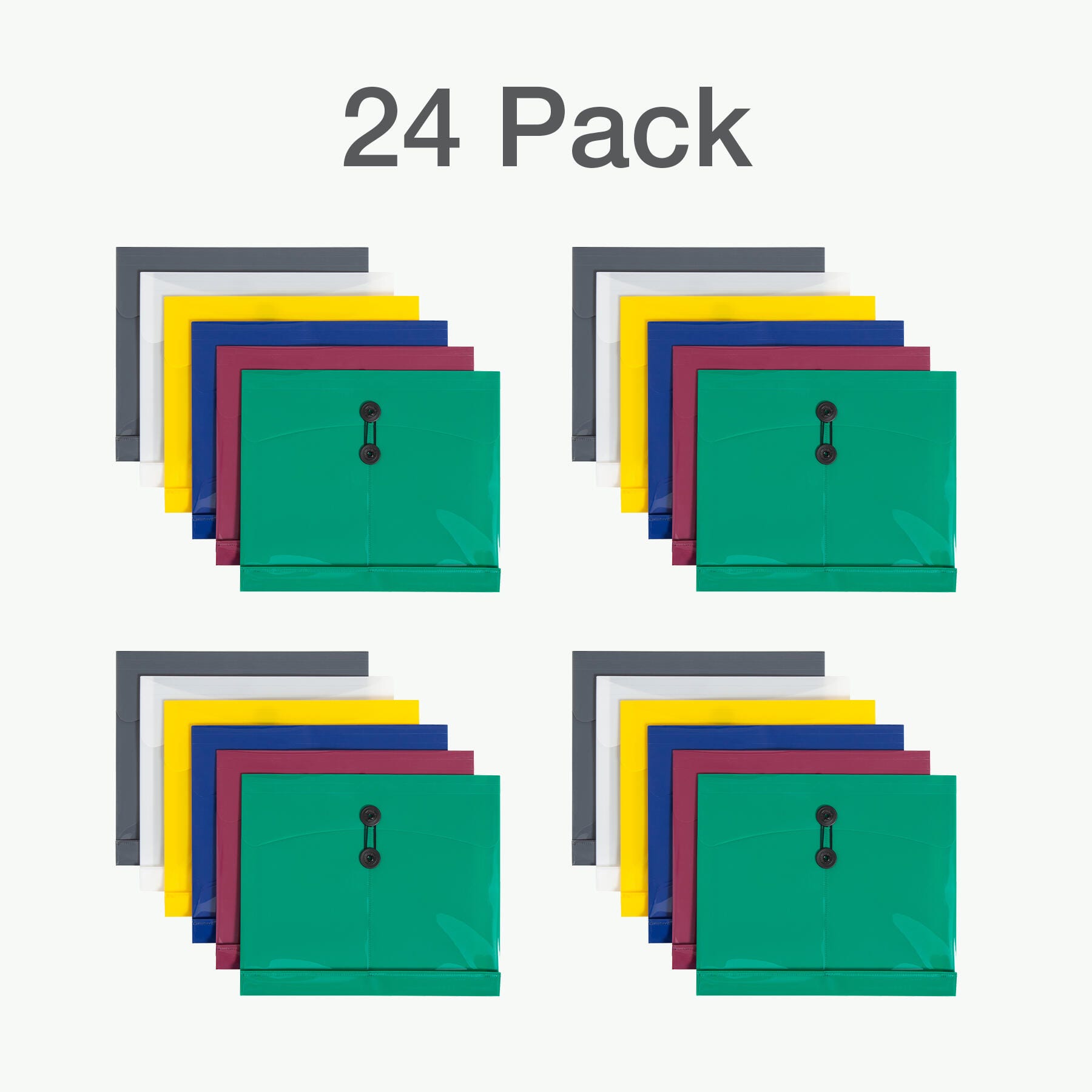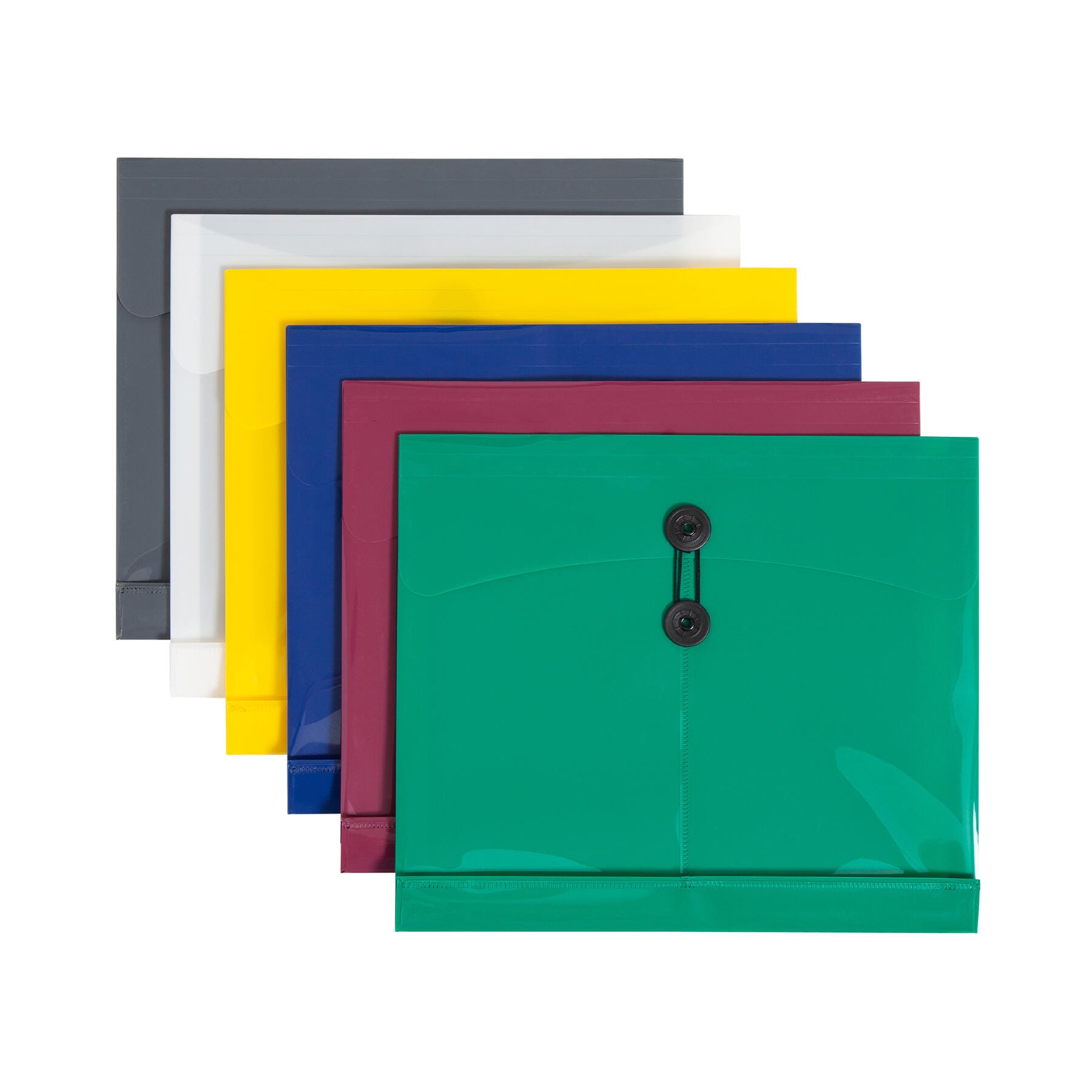 Envelopes are made of translucent poly material that allows for quick identification of contents. The water-resistant material ensures that your papers will be protected at all times. Thanks to the string closure, there is no chance of the envelope pockets opening accidentally, resulting in the loss of the papers inside. The envelope expands up to 1 inch, so you can store many important papers in one envelope pocket. Sold as a pack of 24 in assorted colors.