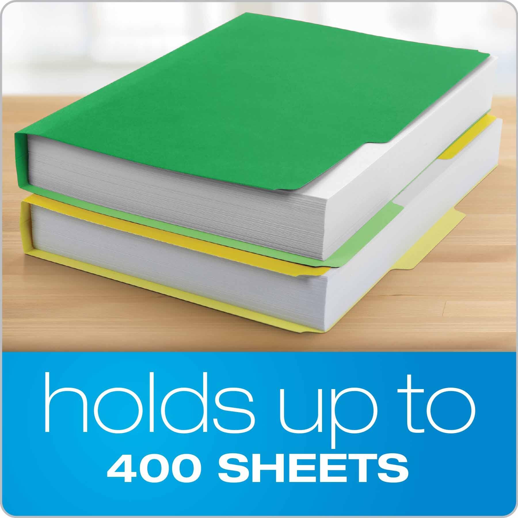 Double Stuff File Folders have twice the capacity of standard folders to give you filing flexibility to stuff over time or right away. Each folder holds more than 250 sheets of letter-size papers. 1/3-cut tabs come in all three tab positions for easy access. Folders are made of sturdy, 11 point, acid-free paper.