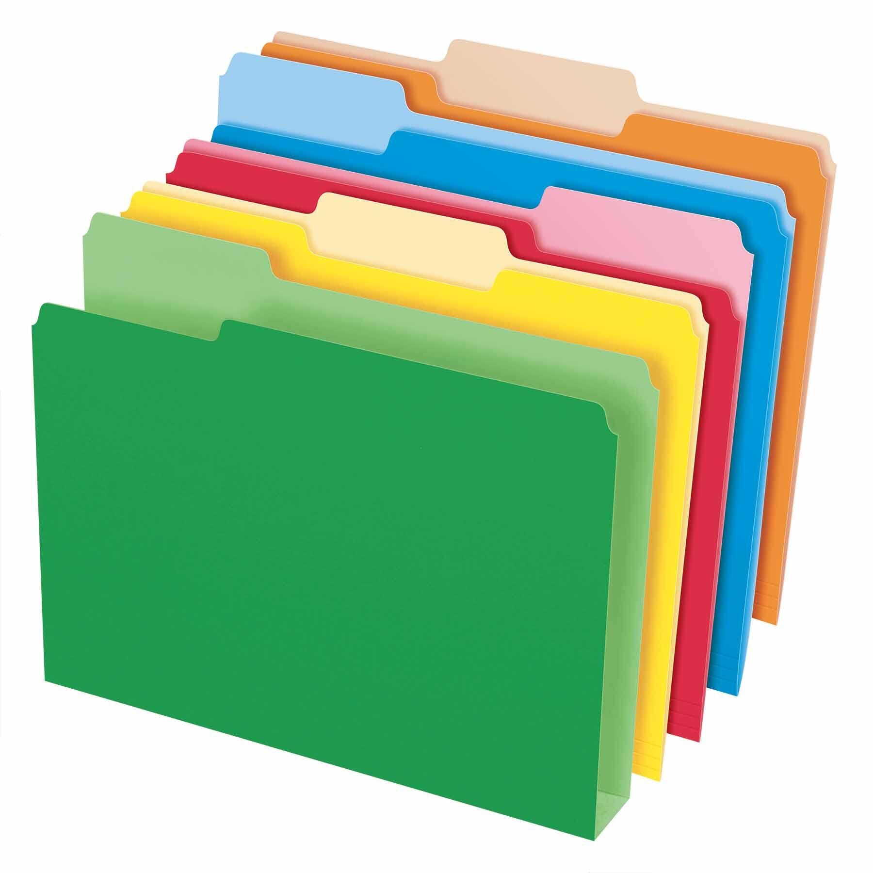 Pendaflex Double Stuff File Folder, Letter Size, 1/3 Cut Tabs, Assorted Colors, Pack of 50