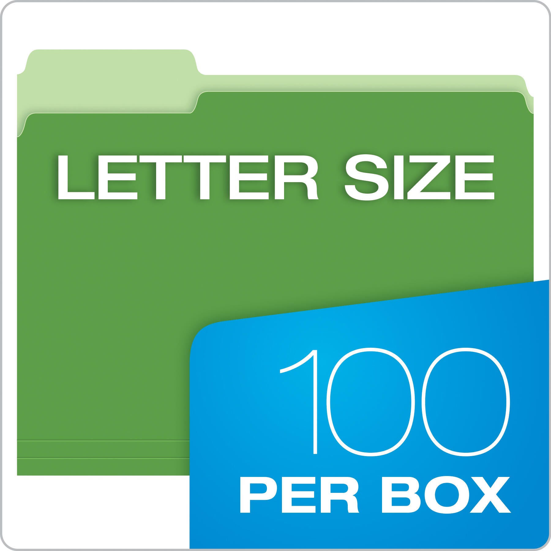 Pendaflex Two-Tone File Folder, Letter Size, 1/3 Cut Tabs, Green, Pack of 100