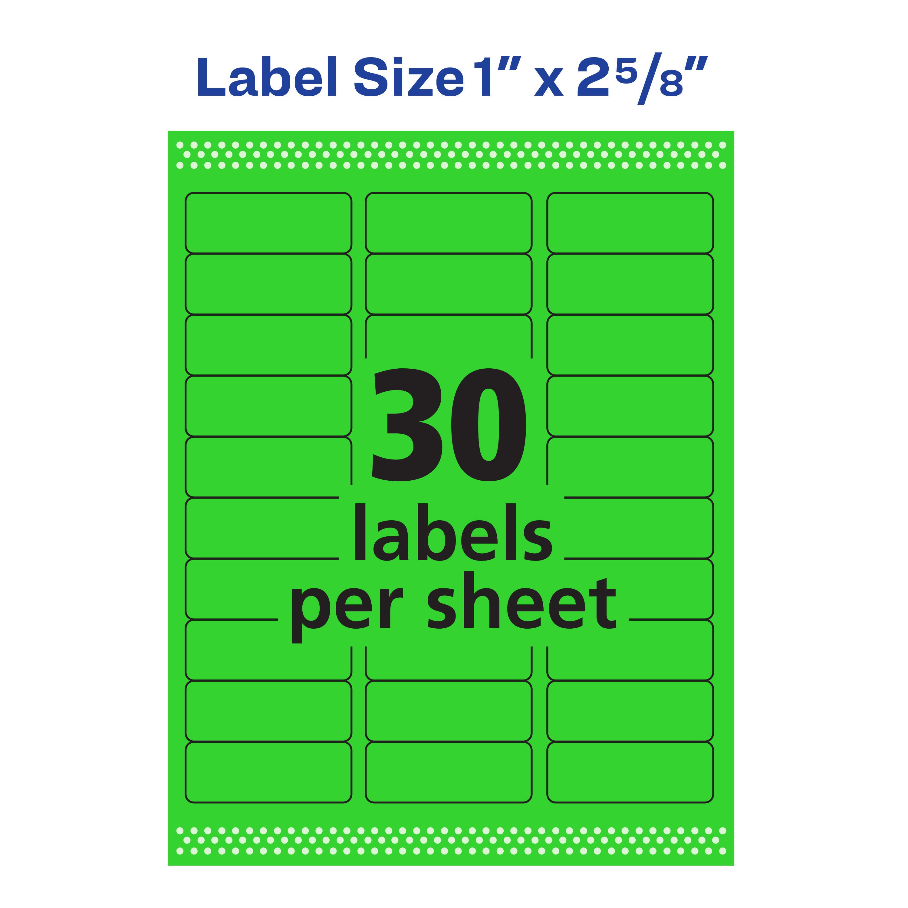 Avery Permanent Laser Labels, 1 x 2-5/8 Inches, Neon Green, Pack of 750