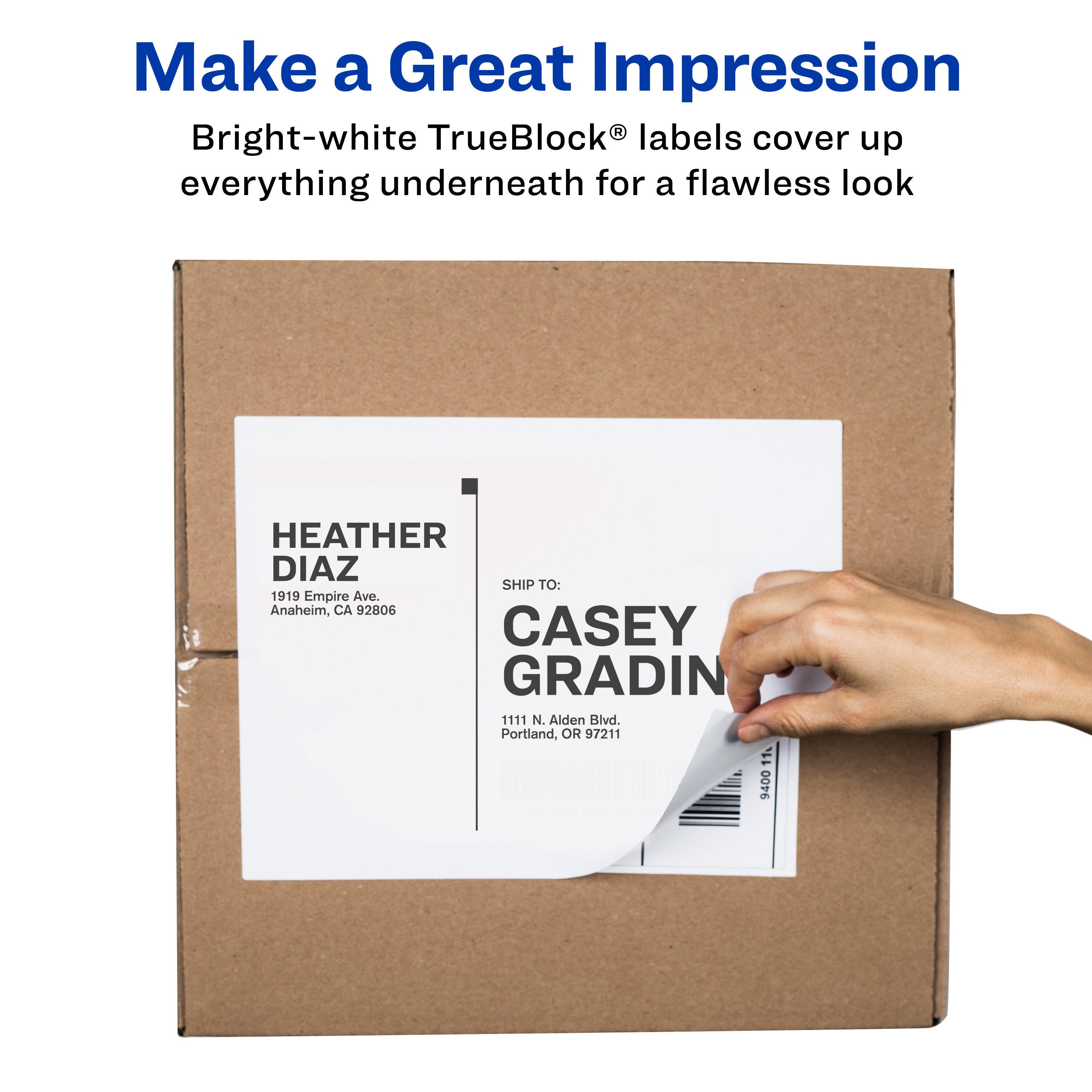 Create professional-looking labels quickly using Shipping Labels with TrueBlock Technology. Labels with TrueBlock completely cover everything underneath so you can reuse mailing tubes, boxes and more. Bright-white labels have permanent adhesive and are jam-free and smudge-free. Perfect for creating professional-looking mailings, shipping, bar-coding and organizing. Labels are designed for use in laser printers. Avery offers many easy-to-use templates for Microsoft Word and other popular software programs.