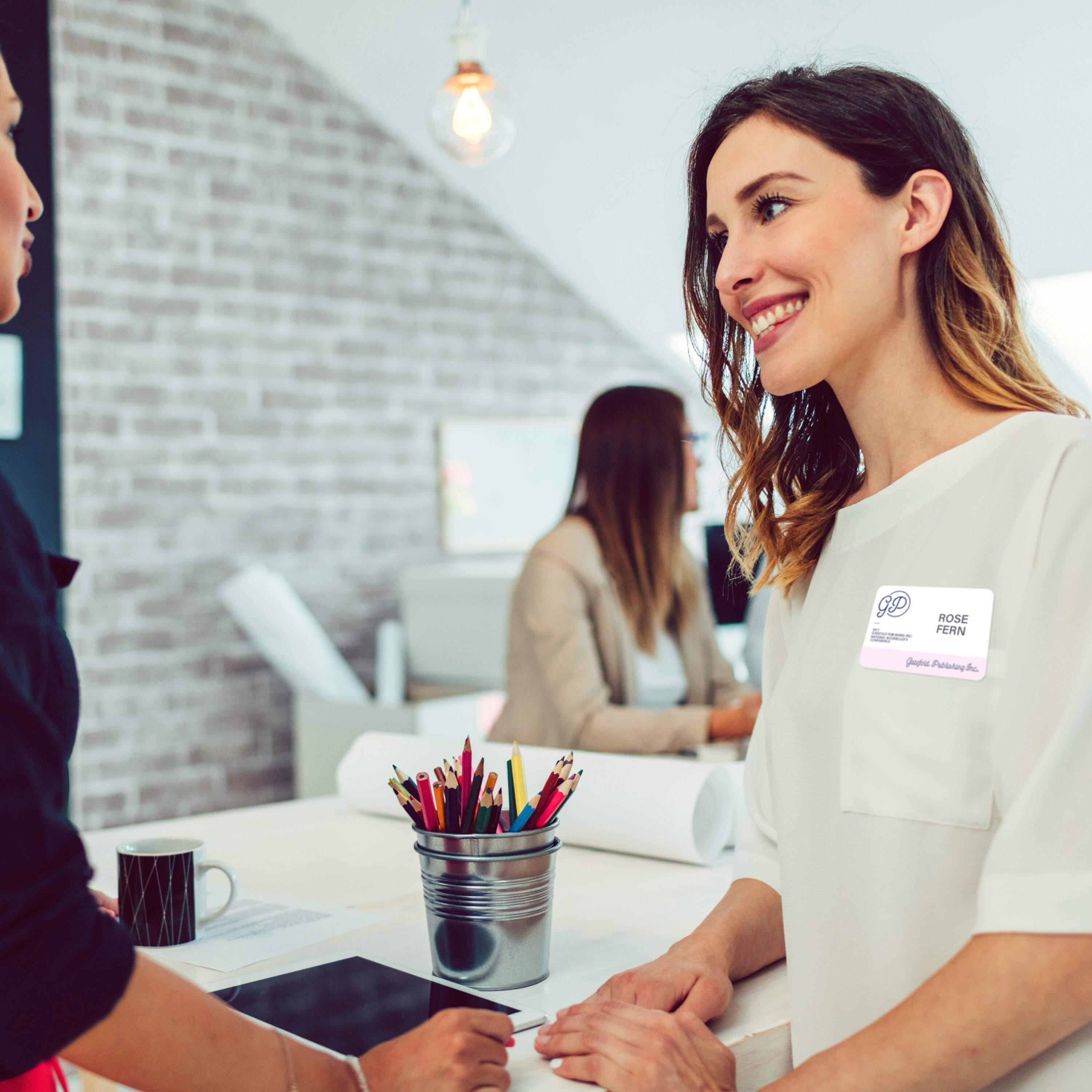 Create professional-looking name badges instantly with a laser or inkjet printer. Self-adhesive labels adhere firmly and remove easily. Flexible badge moves with clothing without the edges curling up or the badge falling off. Unique peel-away design allows badges to separate easily from the printed sheet while the individual badge backing remains intact until ready to use. The 8-1/2 x 11 inch sheets feed automatically from your printer's paper tray. Each sheet has eight labels. Each 8.3 mil thick badge measures 2-1/3 x 3-3/8 inches. Durable adhesive is safe for most fabrics, but is not recommended for vinyl, plastic, leather, suede, velvet, corduroy, silk and other delicate fabrics. Avery offers many easy-to-use templates for Microsoft Word and other popular software programs.