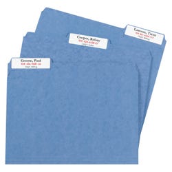 Create professional-looking file folder labels for easy and quick file identification. Labels with TrueBlock completely cover everything underneath so you can reuse mailing tubes, boxes and more. Labels have permanent adhesive that sticks without lift or curl. Each sheet of labels is acid-free, jam-free and smudge-free. Each sheet has labels sized to fit 1/3-cut tabs. File folder labels are compatible with inkjet and laser printers.Features