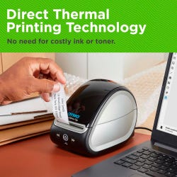 The LabelWriter® 550 Printer by DYMO is a versatile solution for any office. This printer is easily portable and features the convenient Automatic Label Recognition™ technology, which ensures you always know the size, type, and number of labels remaining at a glance. DYMO LabelWriter® printers use a direct thermal printing process, so you save money on ink and toner. Plus, DYMO Connect Software for desktop connects your PC or Mac for a variety of stylish design possibilities.Features