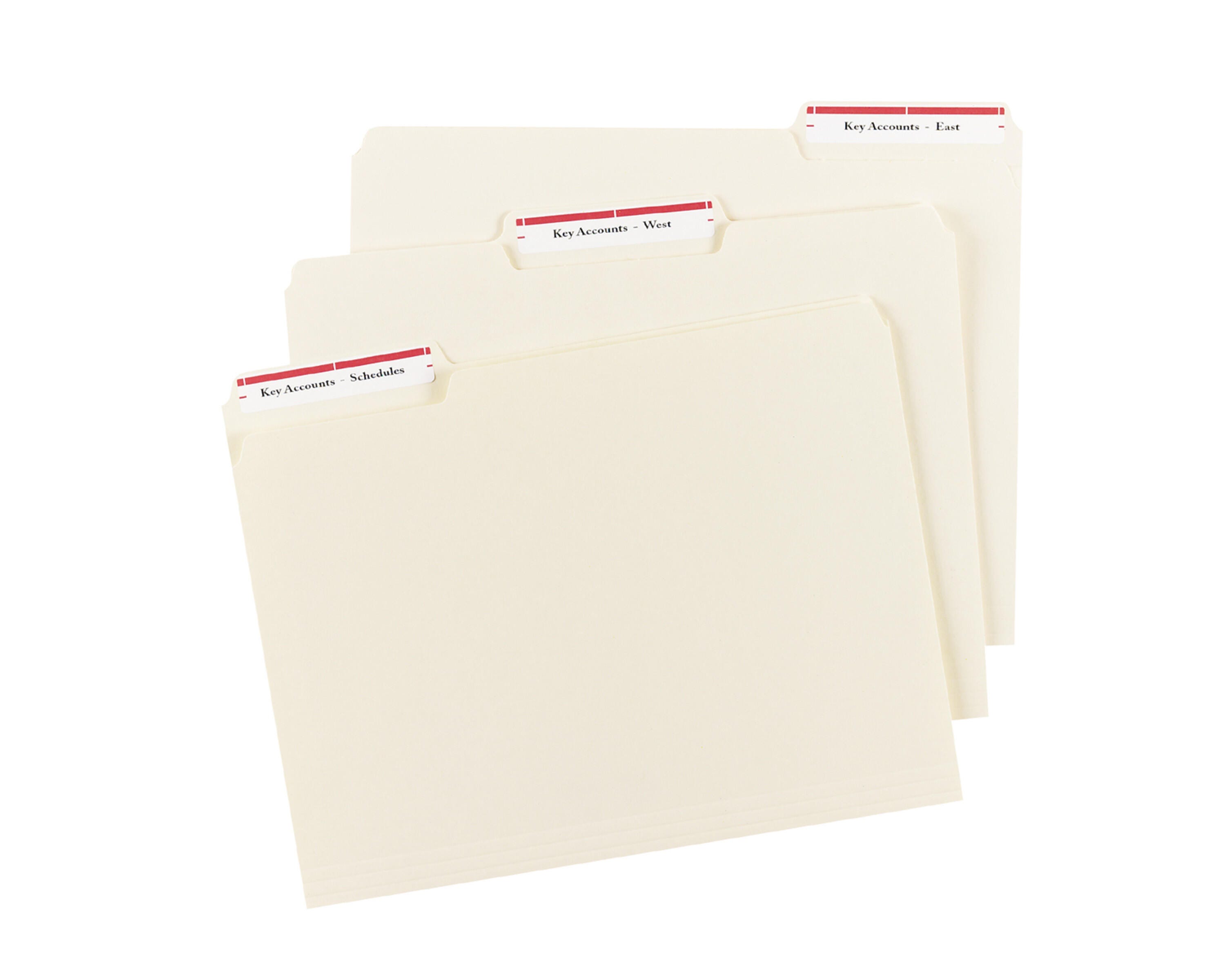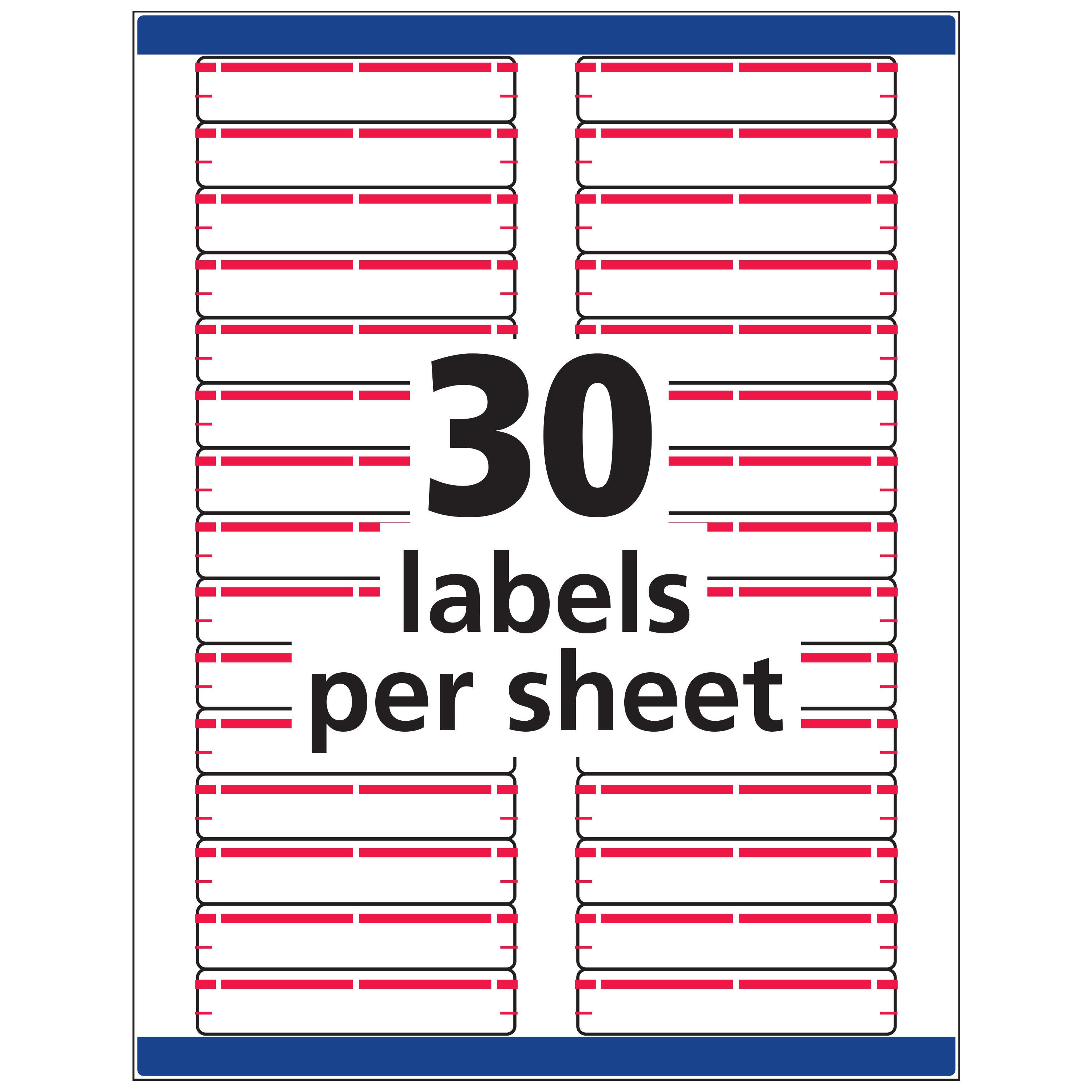 Create professional-looking file folder labels for easy and quick file identification. Labels with TrueBlock completely cover everything underneath so you can reuse mailing tubes, boxes and more. Labels have permanent adhesive that sticks without lift or curl. Each sheet of labels is acid-free, jam-free and smudge-free. Each sheet has labels sized to fit 1/3-cut tabs. File folder labels are compatible with inkjet and laser printers.