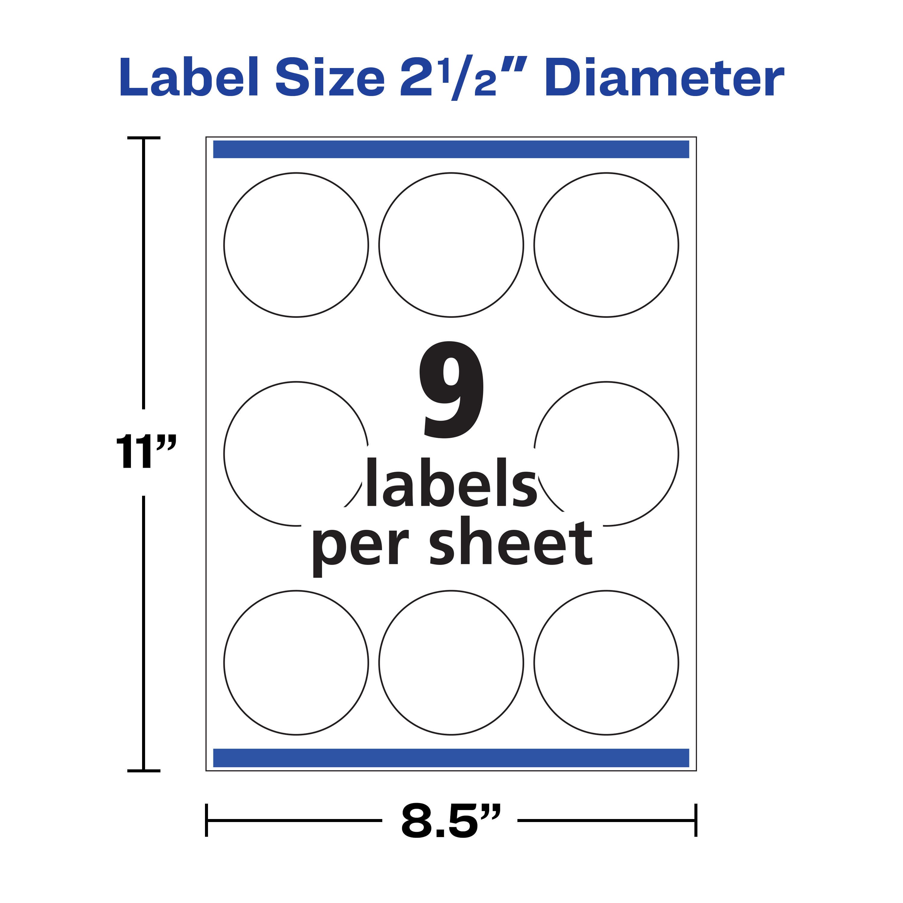 Avery Round Labels, 2-1/2 Inch Diameter, White Gloss, Pack of 120