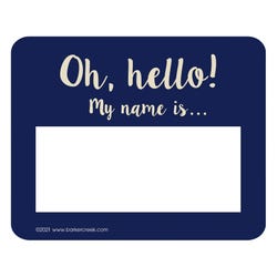 Our new Oh, hello! Name tags and self-adhesive labels are perfect for all ages! Package includes 45 multi-purpose self-adhesive name tags -- 15 each of 3 designs. The designs feature a lovely navy color and say 'Oh, Hello! My name is...', 'Hello! My name is...', and 'Hi there! My name is...'. There is also a box to write in your name. These name tags are perfect for the first week of school, field trips, assemblies, special visitors, staff meetings and more! They can also be used to personalize file folders, binders, and notebooks. The uses are limited only by your imagination!Includes: (45) Labels