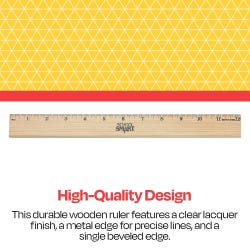 School Smart Thick Wooden Ruler, Single Beveled with Metal Edge, 12 Inches