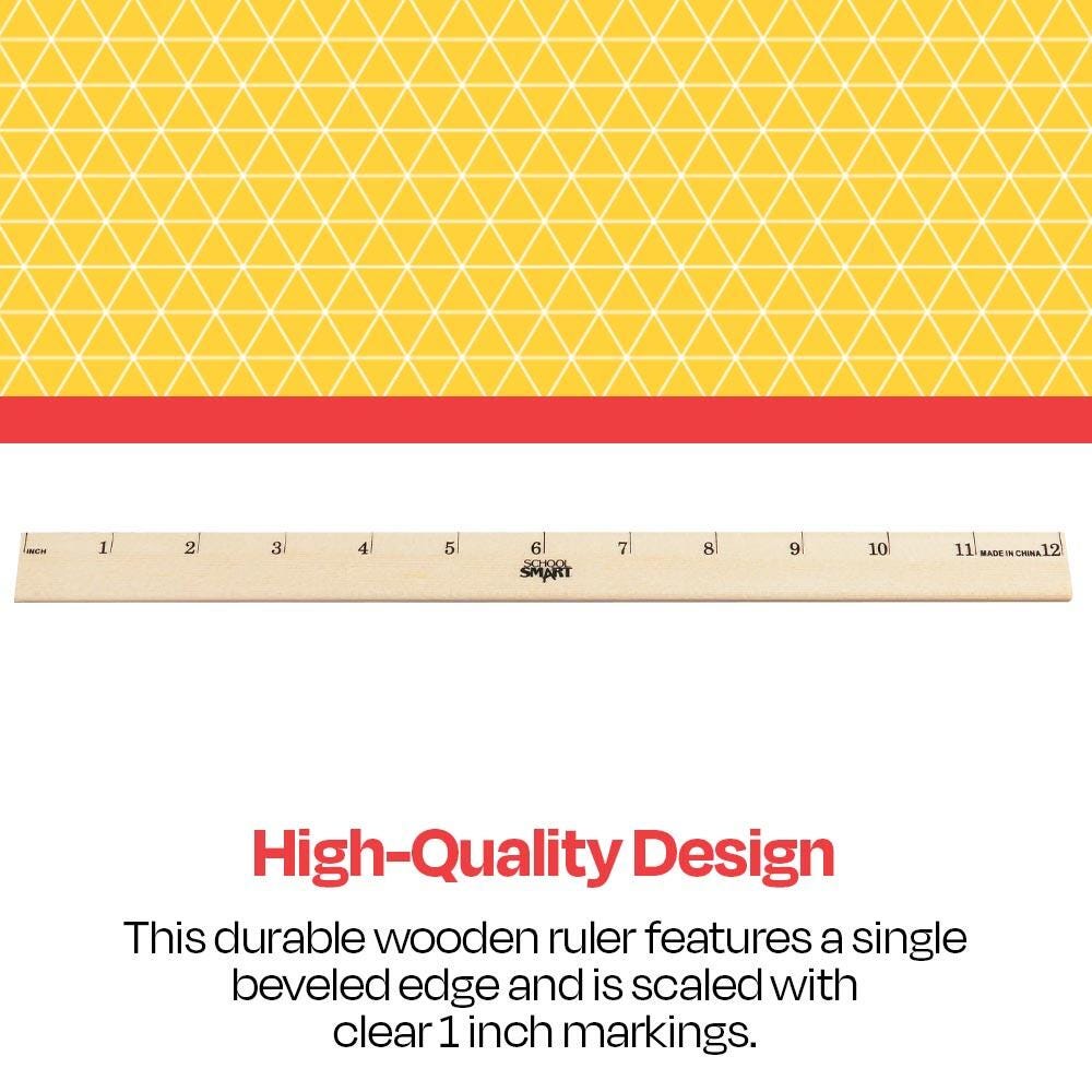 Measure comfortably and draw straight lines with the School Smart 12-inch wood ruler. The classic wooden ruler design comes in 1-inch increments. Use the ruler for classroom learning, exploring, and fun.
