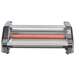 The GBC Ultima 65 School Laminator features an easy to use keypad with presets to decrease set-up time and waste. Laminator is designed specifically for the ease of use, quality and safety demanded in a school environment. Laminator featuring heated roller design comes with an infrared sensor that maintains the rollers at a consistent temperature. Laminator has an auto shut-off, interlocking feed tray, roller shield and built-in trimmer to encourage safe operation. Laminator measuring 21 x 32-1/2 x 12-1/2 inches has the following specifications such as 27 inch wide by 750 feet length film capacity, 1 to 3 mil thick, 1 inch core and 1-1/2 to 10 feet/minute speed. Laminator operates with 120 VAC, 60 Hz, 9 A of power supply.