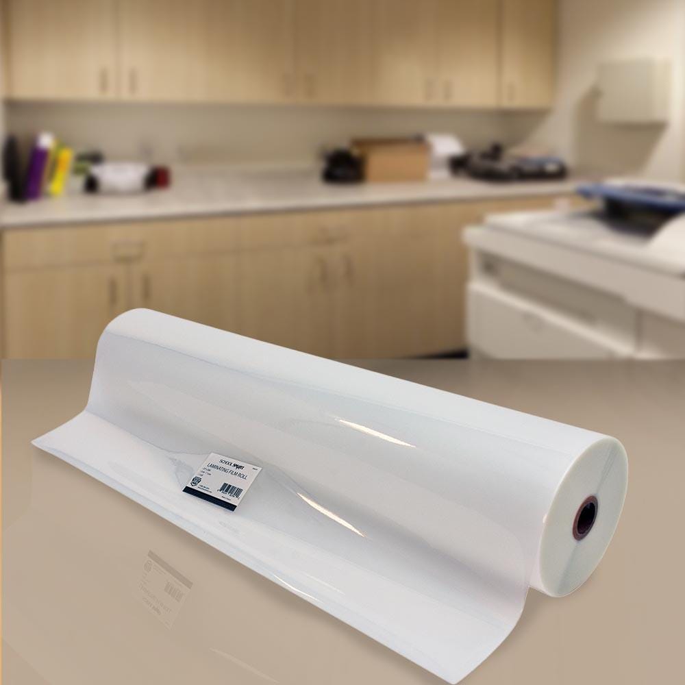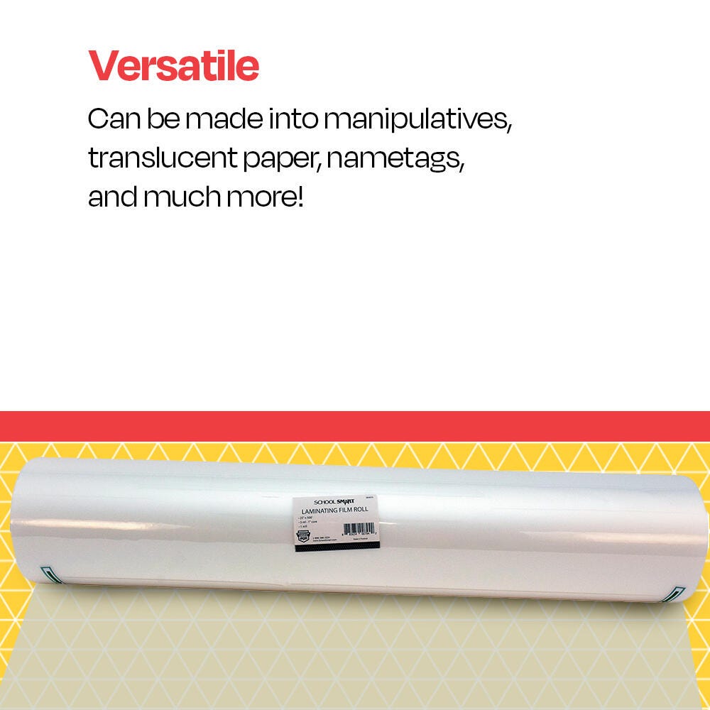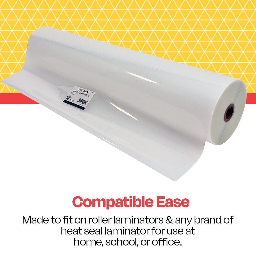 One roll of 3 mil thick laminating film is specifically made to fit on roller laminators and any brand of heat seal laminator for use at home, school, or office