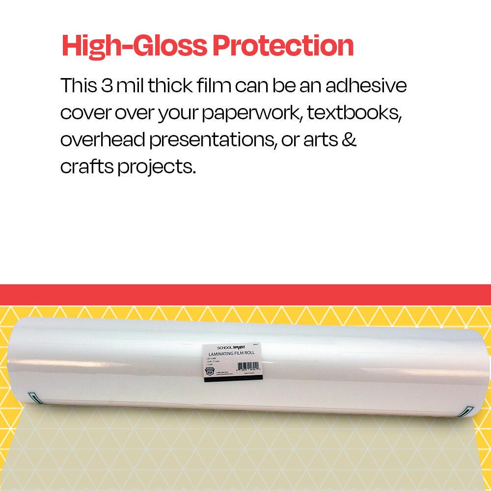 School Smart Laminating Film Roll, 25 Inches x 500 Feet, 3 Mil Thick, High Gloss