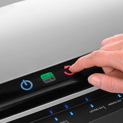 The Jupiter 125 has a unique AutoSense system that can detect pouch thickness and self adjust to the optimal laminating setting. It warms up in 1 minute with InstaHeat technology and performs faster with 47 inches per minute speeds. The Advanced Pouch Tracking System detects and automatically reverses pouch in case of mis-feeds. Can laminate up to 10 mil thickness and the robust 6 roller system offers superior lamination. Auto shut-off saves energy and prevents overheating when not in use. Throat width of 12.5 inches and measures 5.06H x 21.25W x 8.19D inches.Includes: