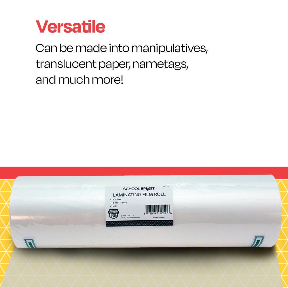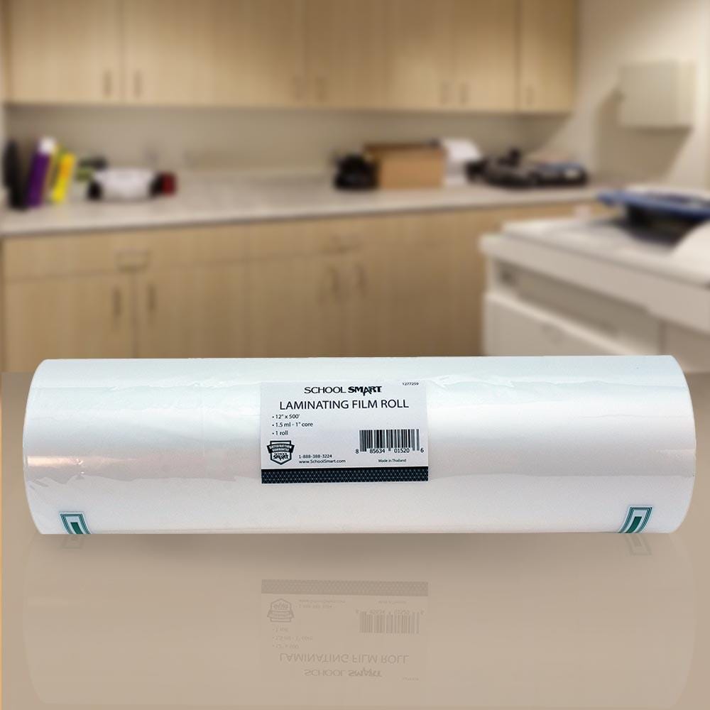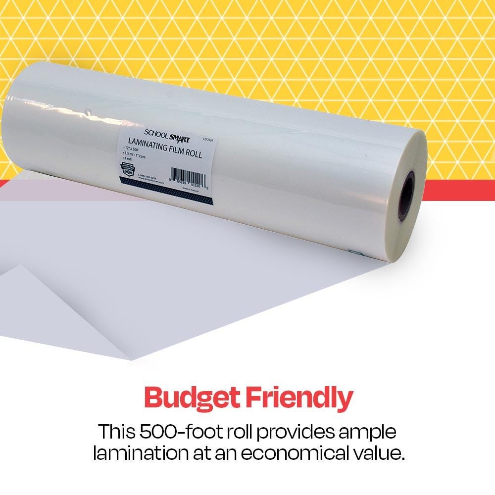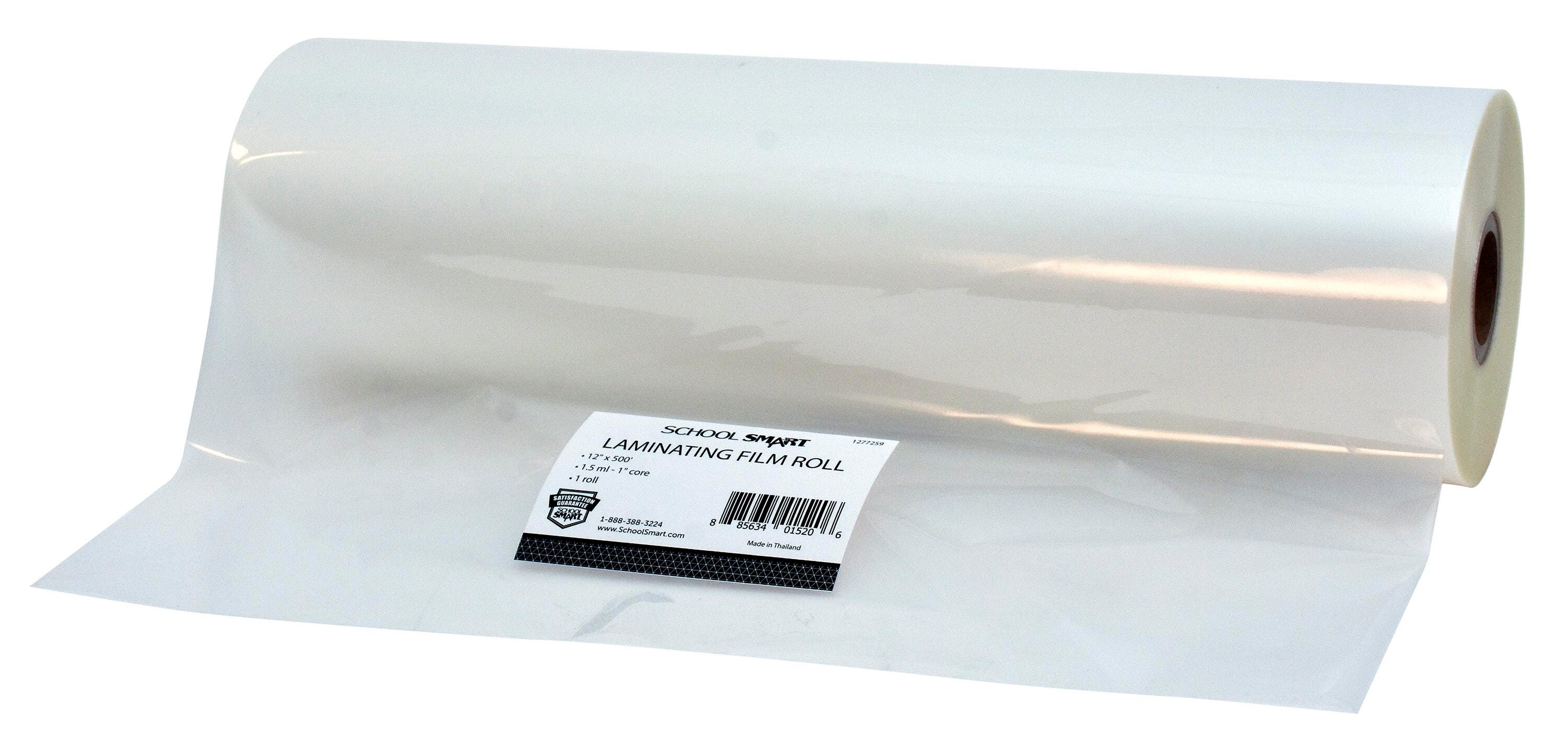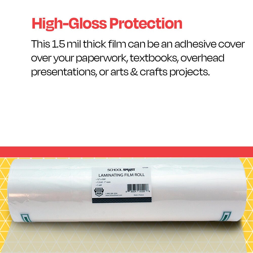 School Smart Laminating Film Roll, 12 Inches x 500 Feet, 1.5 mil Thick, 1 Inch Core, High Gloss