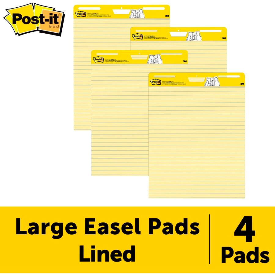 Post-It Self-Stick Easel Pads, 25 x 30 Inches, Ruled, Yellow, 30 Sheets, Pack of 4