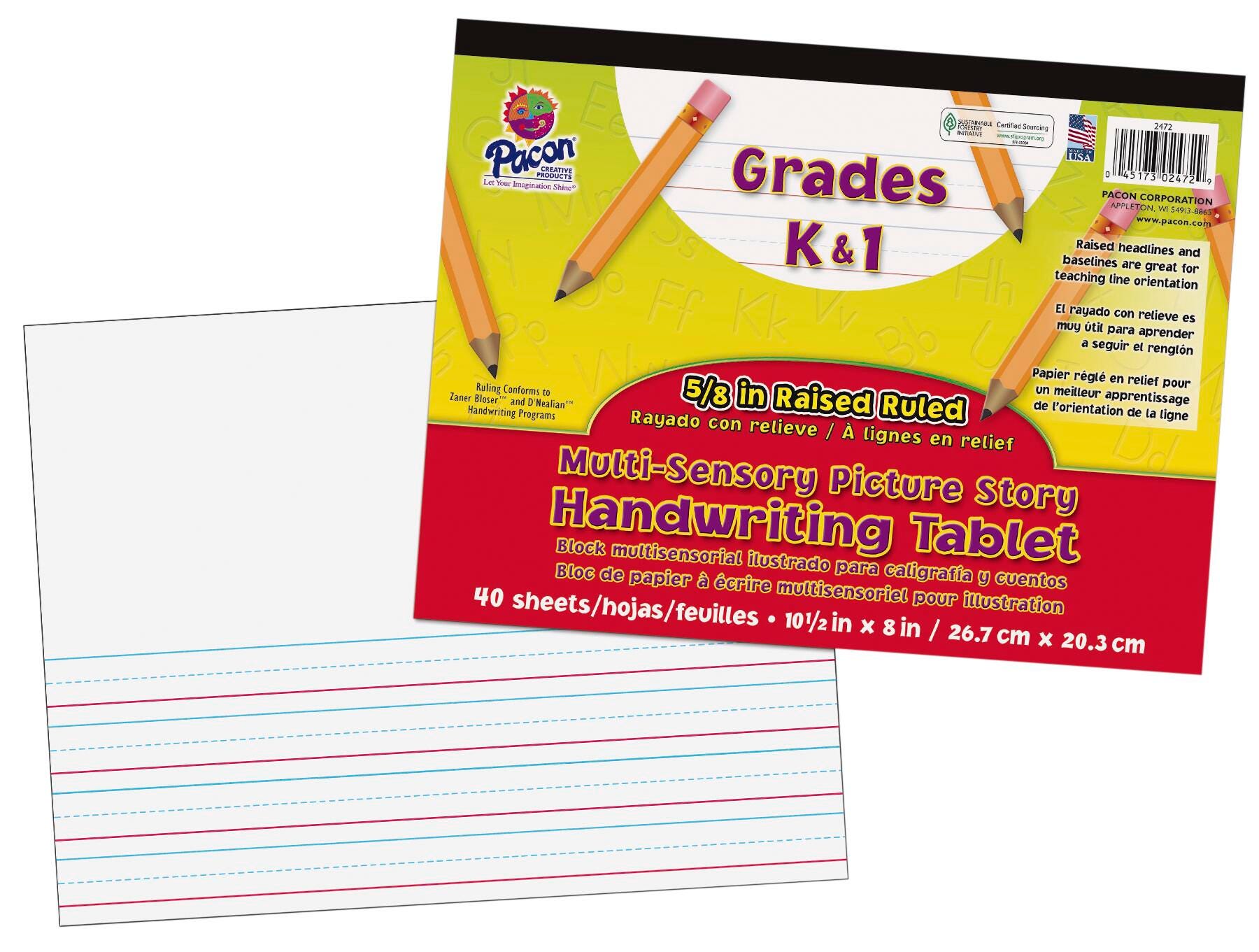 Pacon Raised Rule Multi Sensory Picture Story Tablet, 8 x 10-1/2 Inches, 40 Sheets