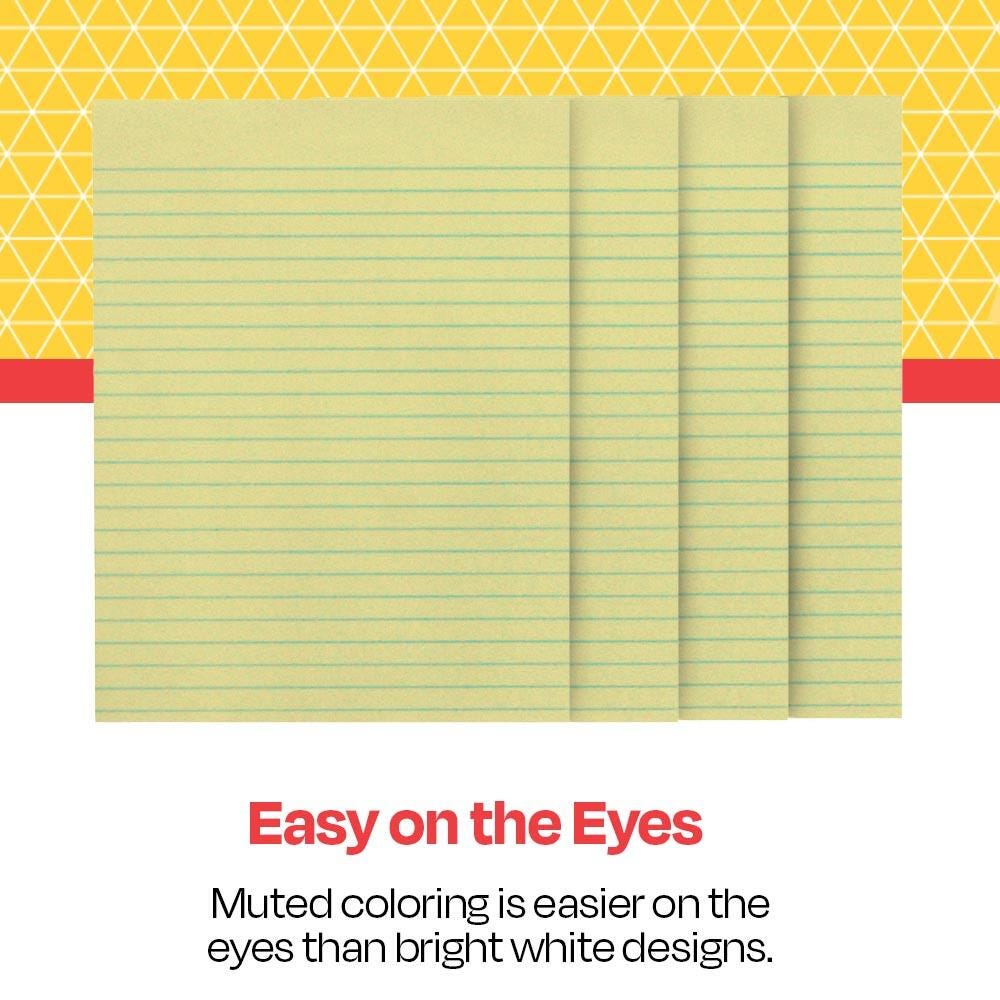 School Smart yellow sulphite paper is 3/8 ruled the short way on both sides with no margin. Basis paper weight is 15 lbs. This versatile paper has many uses such as note taking, brainstorming, composing and many more. The gentle yellow hue of the paper can be easier on sensitive eyes than stark white.