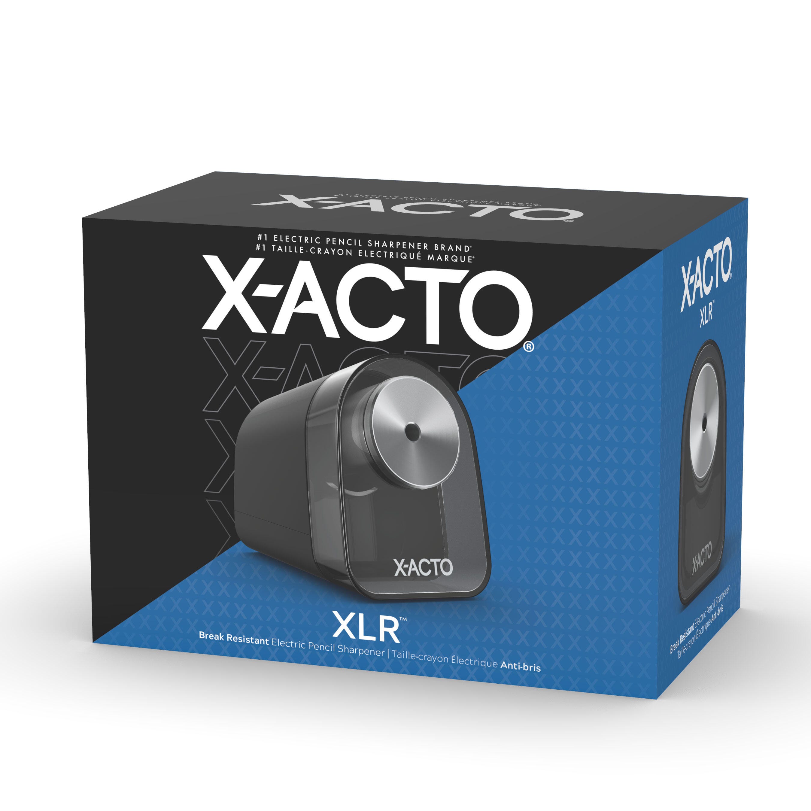 Stylish and powerful, the X-ACTO XLR™ Electric Pencil Sharpener combines smart sharpening technology with modern construction for dependable home and office use. This classic box sharpener utilizes a hardened helical cutter to efficiently sharpen pencils to precise fine points. A powerful yet quiet electric motor delivers reliable sharpening power, while an Auto-Reset feature helps prevent overheating and damage. The Pencil Saver technology eliminates over-sharpening to extend pencil life and minimize waste. The X-ACTO XLR™ Electric Pencil Sharpener is designed to be a sleek and reliable addition to your workspace.Features