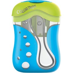 Color'Peps Two Hole Colored Pencil Sharpener sharpens to a squared off point to reduce lead breakage. Designed for standard and large bore pencils. Great for the young artist!