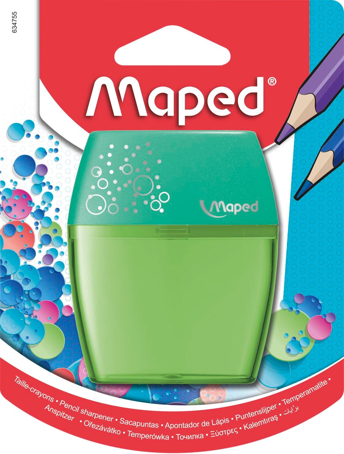 Keep your pencils sharp with the Maped Shaker 2-Hole Pencil Sharpener. Featuring 2 high quality steel blades, this classic sharpener makes it easy to sharpen any standard or jumbo-sized pencils to a precise tip. Transparent, shatter resistant construction makes it easy to see when you want to empty the integrated shavings canister. Perfect for school, the curved compact shape of the Shaker sharpener is easy to hold and is a great addition to any pencil case or bag! Comes in Blue, Green and Pink. Sorry, no color choice.