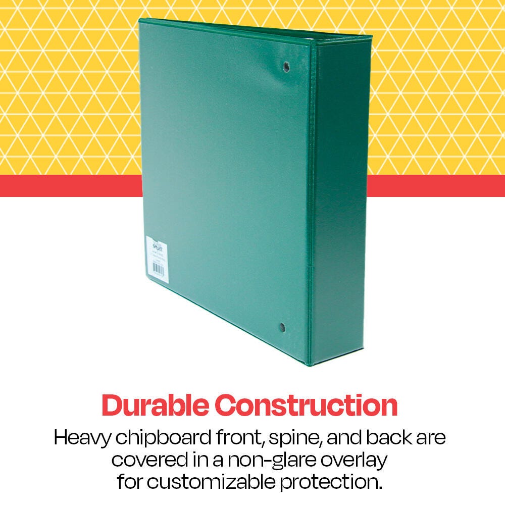 The School Smart Polypropylene Round Ring View Binder provides a versatile solution for document storage, organization, and presentation. It boasts a convenient non-glare overlay on the spine, front, and back covers that allows you to insert custom labels or individual sheets for easy access and identification. The binder also features round ring mechanisms have a 2-inch diameter that are easy to open and close, and a large 425-sheet capacity. The binder measures 11 W x 11-1/2 L inches.