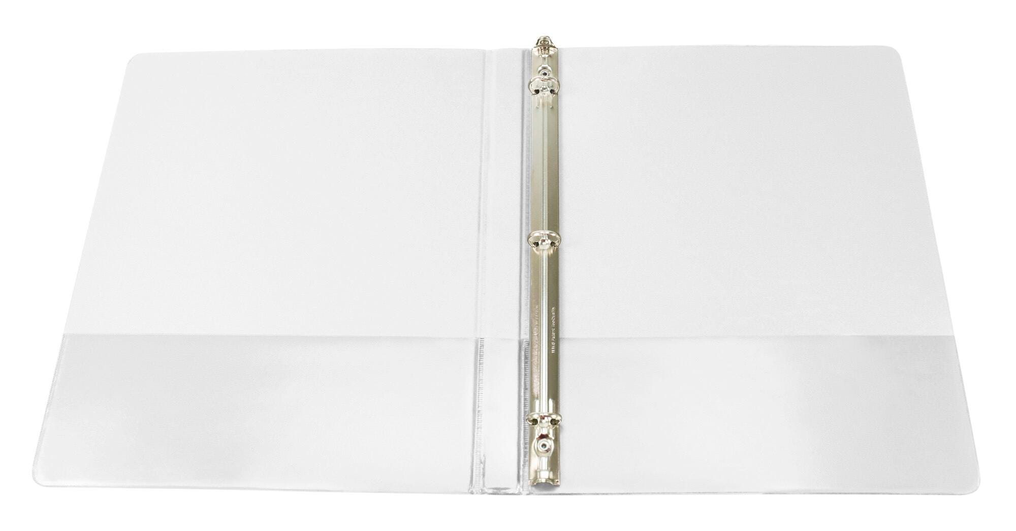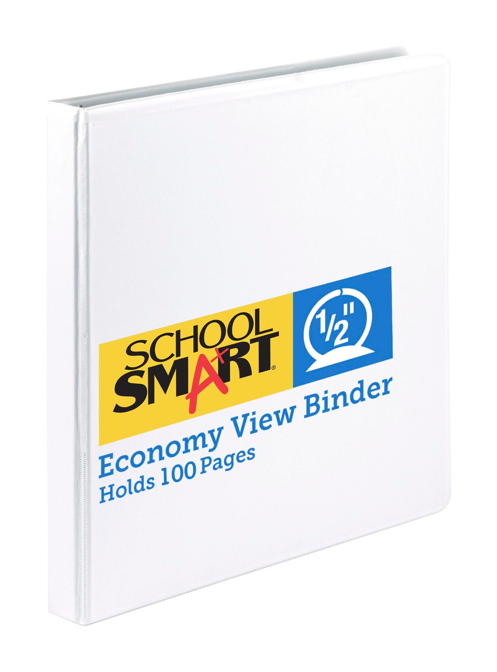Gather records, paperwork, notes, and other essential papers with the School Smart white 1/2 inch round ring view binder. Our durable O-ring binder with view pockets has a useful non-glare overlay on the front, back, and spine covers to allow you to insert custom labels or individual sheets for easy viewability and access. Cover pockets on the clear-view binder also prevent the transfer of ink from printed materials. The O-ring mechanisms are O-shaped and easy to open and close, so you can organize and store important sheets of paper in your 3-ring view binder. Made of polypropylene, the sturdy binder also has two deep inner pockets to hold loose sheets of paper. This small O-ring file has a 100-sheet capacity, and the entire white binder measures 9-1/2 x 11-1/2 inches.Features