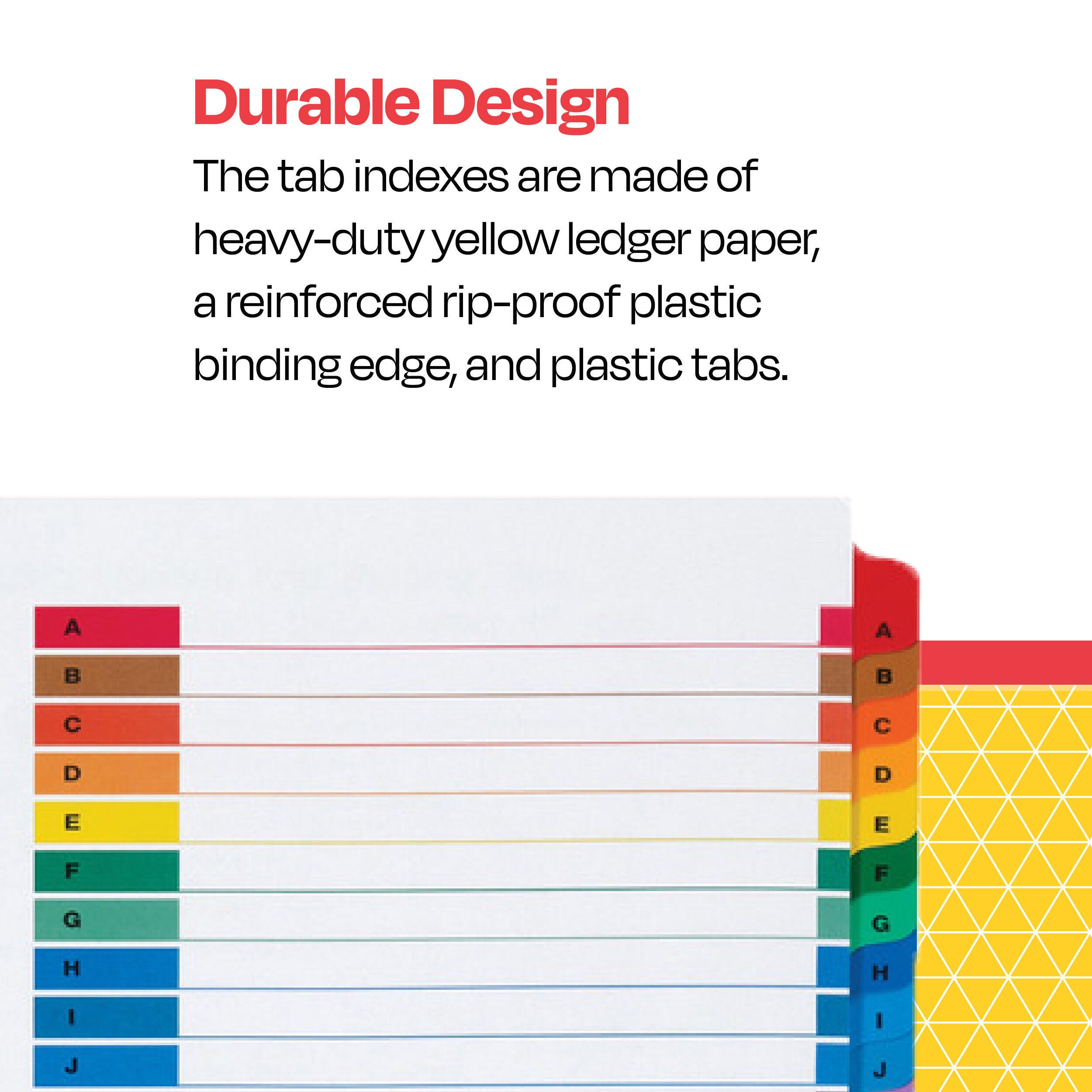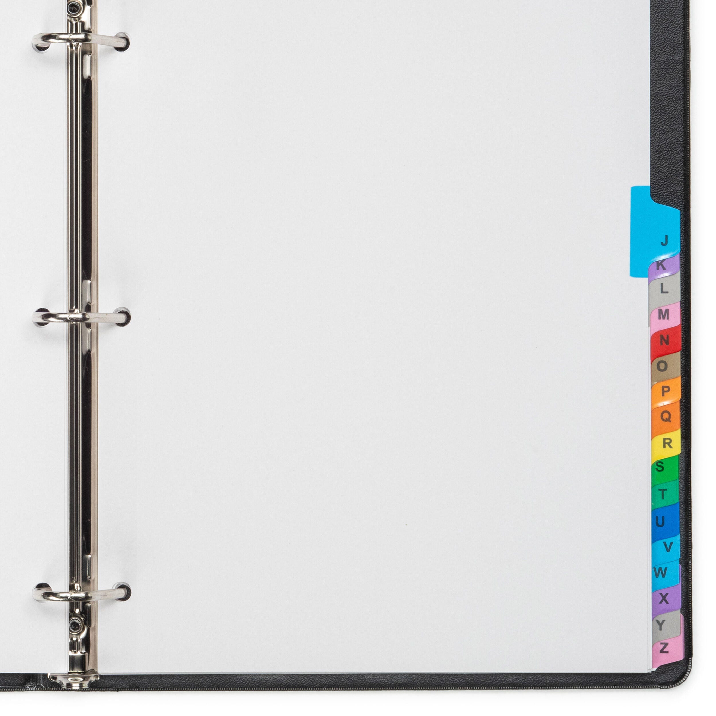 - The A-Z tab dividers feature a tear-resistant reinforced 3-hole punched edge on one side and a letter-labeled tab on the other