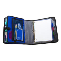 Two inch, 3 ring binder includes inside pockets for school and work supplies. Features a 5-color tabbed expanding file for better organization and a place to hold an MP3 player and flash media. Guaranteed to last the school year. Contents of binder sold separately.Features