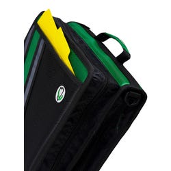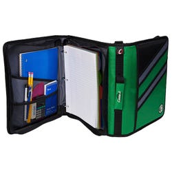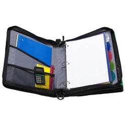 Binder has two sets of 1-1/2 Inch D-Rings for a total capacity of 3 inches of storage. The zipper closure ensures materials will be secured inside. There are two exterior protective pockets for documents. The back to back "Z" configuration gives you maximum storage. It is covered in ripstop material with a square pattern that traps punctures and prevents tearing. Easily transport with either the handle or the shoulder strap. Contents of binder sold separately.Features