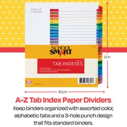 School Smart A-Z Tab Index Paper Dividers, Assorted Colors