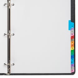 Create your own table of contents and stay organized with the School Smart A-Z tab dividers. The alphabet dividers for binders are great for teachers, office professionals, and students. Our assorted color insertable tab indexes, sized 8-1/2 x 11 inches, have a 3-hole punch design that fits standard 3-ring binders. The alphabetical dividers are made from heavy-duty yellow ledger paper with a reinforced rip-proof plastic binding edge. Use the AZ index tabs for binders for attendance, office tasks, schedules, and more.Features