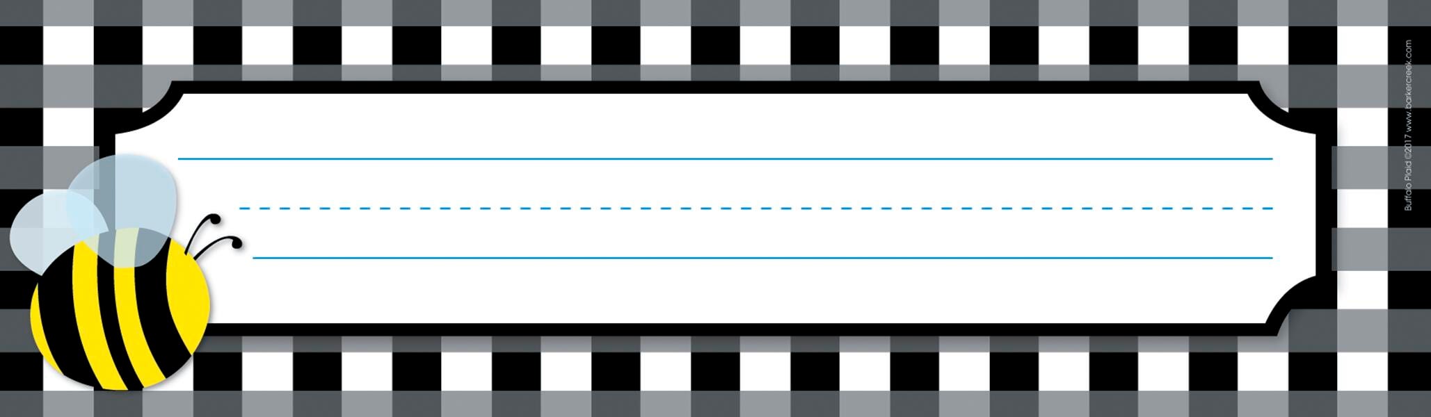 Trade out the ordinary white labels for these extra cute (and double-sided) name plates from Barker Creek! This pack includes 6 designs in black, yellow, and red (with mixed patterns of wide stripes or buffalo plaid with sweet insects or sunflowers) for endless decorating options. Use the side with ruled paper lines when making name plates for student desks and lockers, creating word walls, flashcards for spelling and vocabulary lists, and more. Use the side without the rules for making fun bulletin board signs, labeling cubbies, making hall passes, and adorning any organization or creative project. Set coordinates with Barker Creek's Buffalo Plaid and Wide Stripes collection; simply type in "Barker Creek Buffalo Plaid and White Stripes"; "Barker Creek Wide Stripes"; or "Barker Creek Buffalo Plaid" in our search engine near top of page.Features