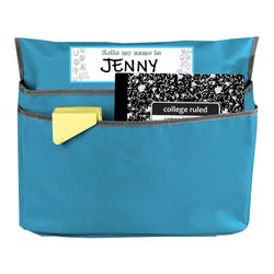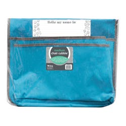 Tame the clutter and maximize classroom space! The Chair Cubbie simply slides over the top of the chair to instantly create more storage locations for students without taking up more space. Easily fits chairs measuring 14 inches. A vinyl pocket that is stitched to the top of the Chair Cubbie allows for personalization and dual pockets with reinforced stitching hold up under heavy use. Bright and cheery Seaside Blue color.Features