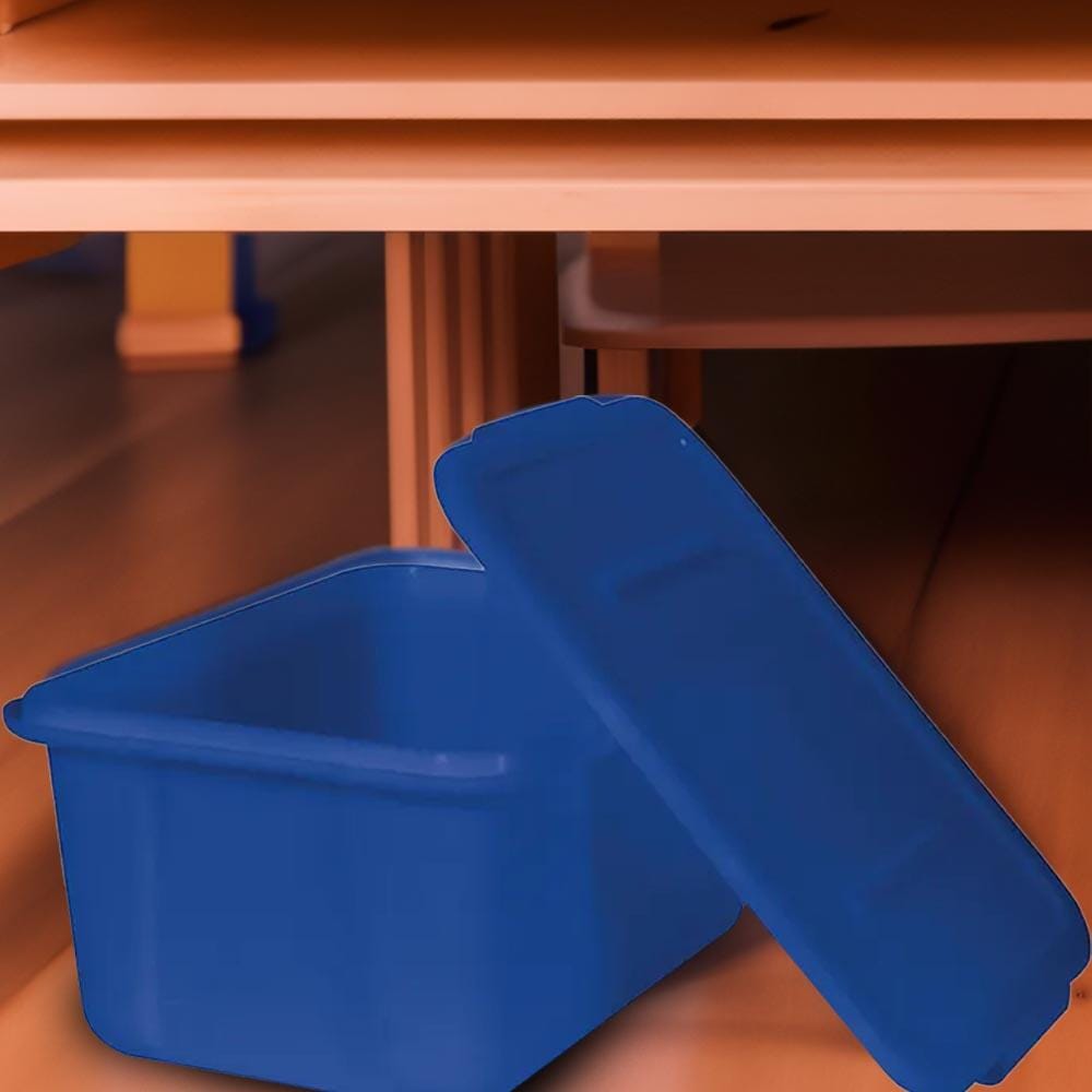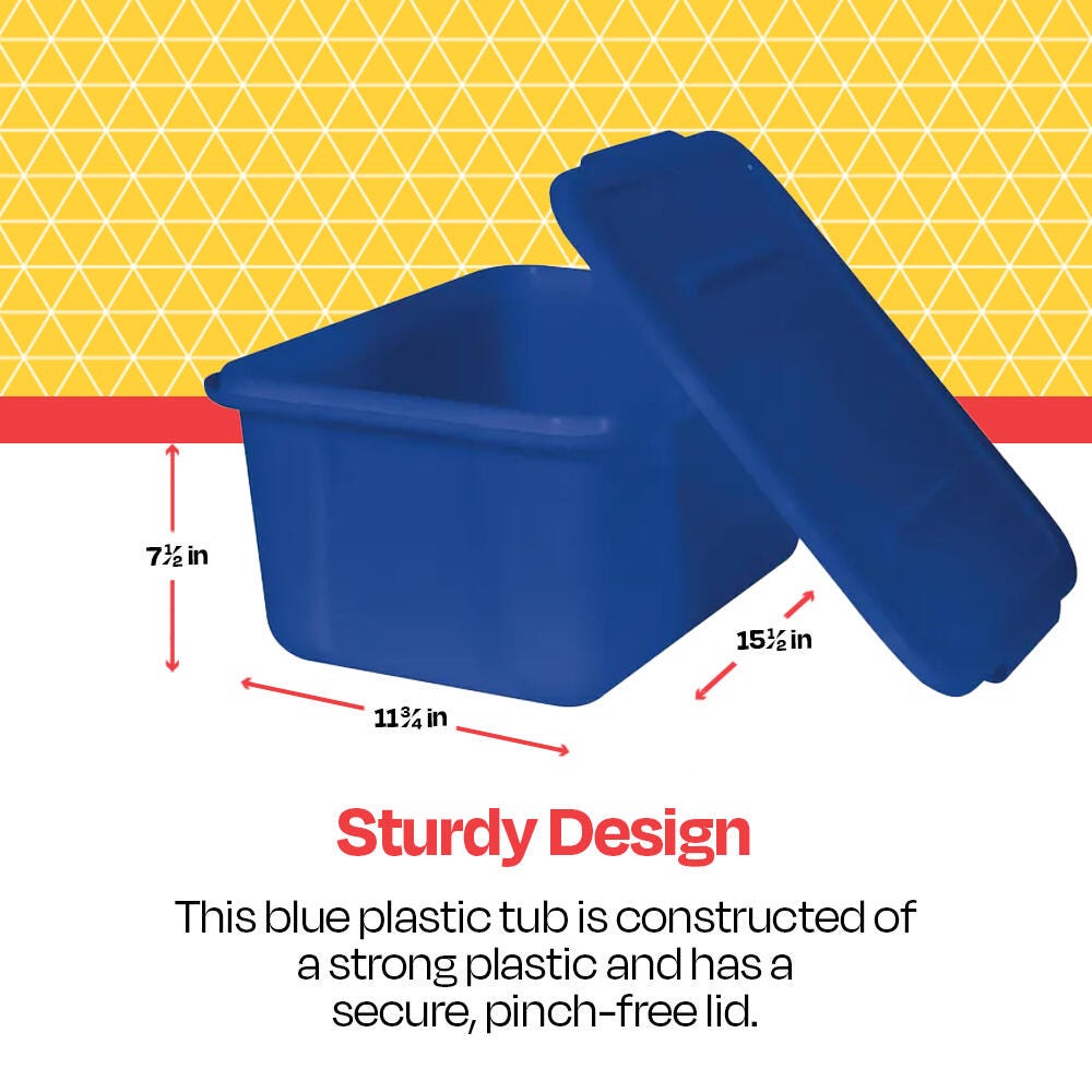 Store arts and crafts supplies, educational materials, toys, seasonal decorations, and more with the School Smart blue storage bin with a non-snap lid. Our plastic storage bins with lids are sturdy, versatile, and stackable. Use them alone, place alongside other storage boxes, or store within deeper drawers in your classroom, childcare center, or home. The colorful plastic bin has a matching lid that secures down firmly on top and helps prevent young children from taking items out.Features