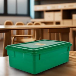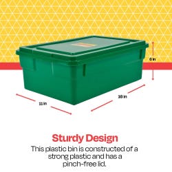 School Smart Medium Storage Bin with Non-Snap Lid, 11 x 16 x 6 Inches, Green