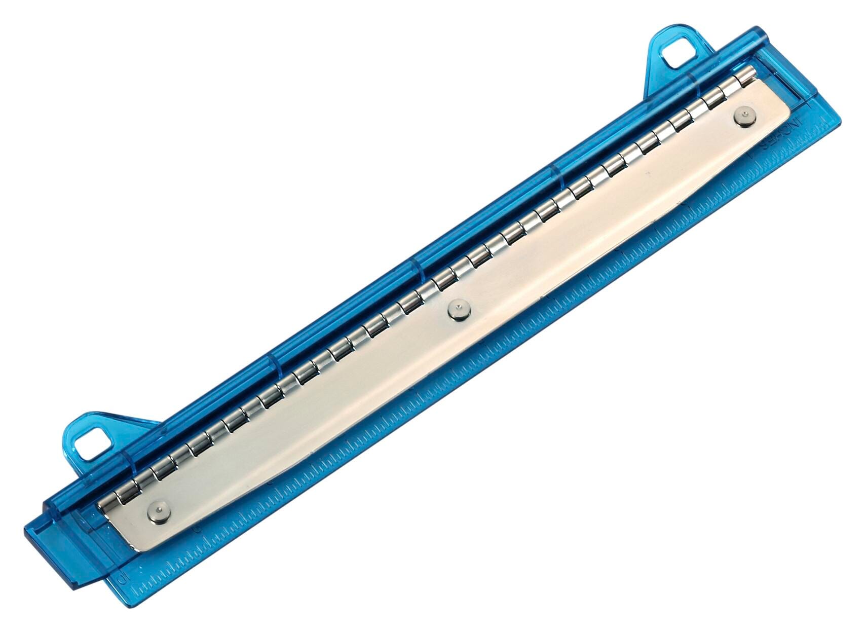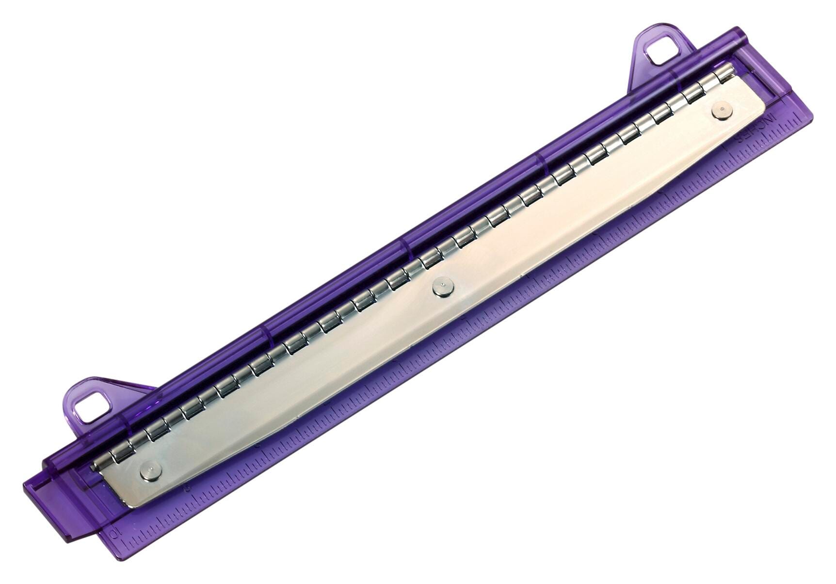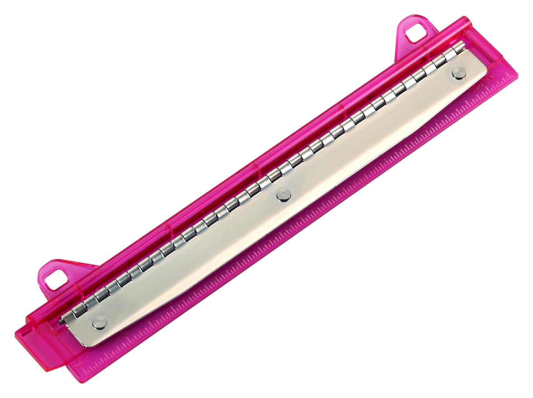A handy hole punch that can travel with you for your on-the-go needs. Designed in an assortment of fun translucent colors that are sure to attract admirers, this efficient compact 3-hole punch is great for travel, work, home, or for storing in standard 3 ring binders in junior high or high school. For optimal performance, the steel punch heads go through up to 5 sheets of paper while the integrated ruler ensures accuracy every time. Assorted translucent colors are: Blue, Purple, Pink, and Green. Colors vary - a specific color is not guaranteed.