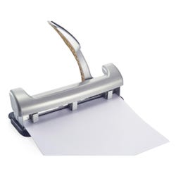 Adjustable 2-3 hole lever action punch for both standard 3 hole and 2 hole punching. Ergonomic padded handle makes punching easier. Calibrated centering device for punching accuracy. Durable metal construction and no mar capacity providing extra punching capacity with ease. Easy to remove view window to observe chip build up, chip dispersal mechanism to prevent jams. Punches up to 25 sheets of 20 lb. paper.Features