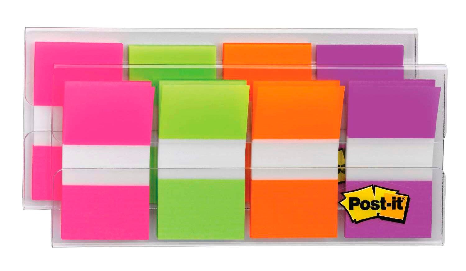 Post-it Flags in Dispenser, 1 x 1-7/10 Inches, Blue, Purple, Green, Orange, 2 Dispensers, 40 Flags per Color, Pack of 160