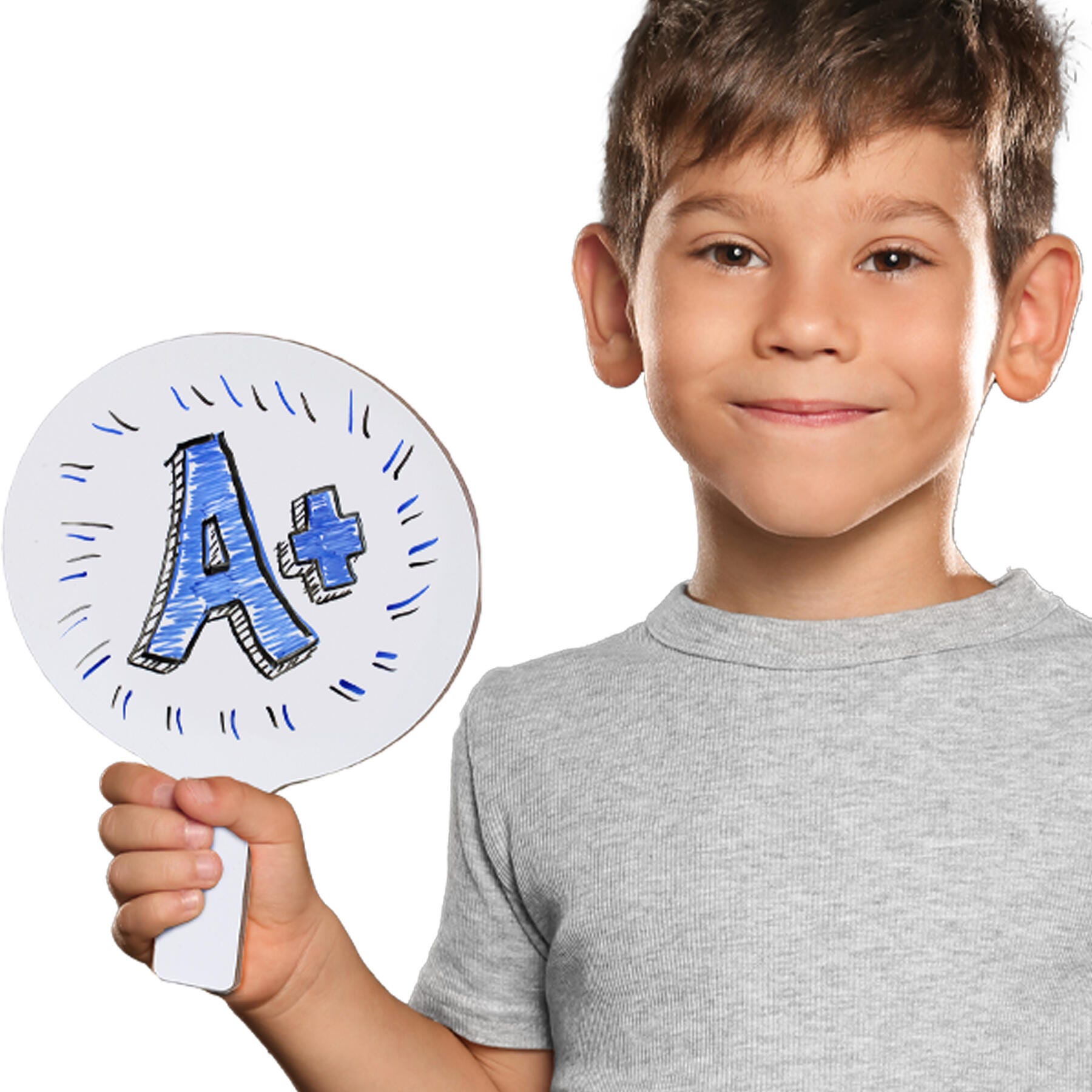 Mini dry erase answer paddles are ideal for quick response lessons and games. Writes on and wipes off easily. Each set includes 12 paddles, 12 erasers, and 12 black pens. Measures 5 x 9 inches.