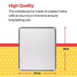 School Smart Medium Magnetic Dry Erase Board, Aluminum Frame, 22 x 17-1/2 Inches