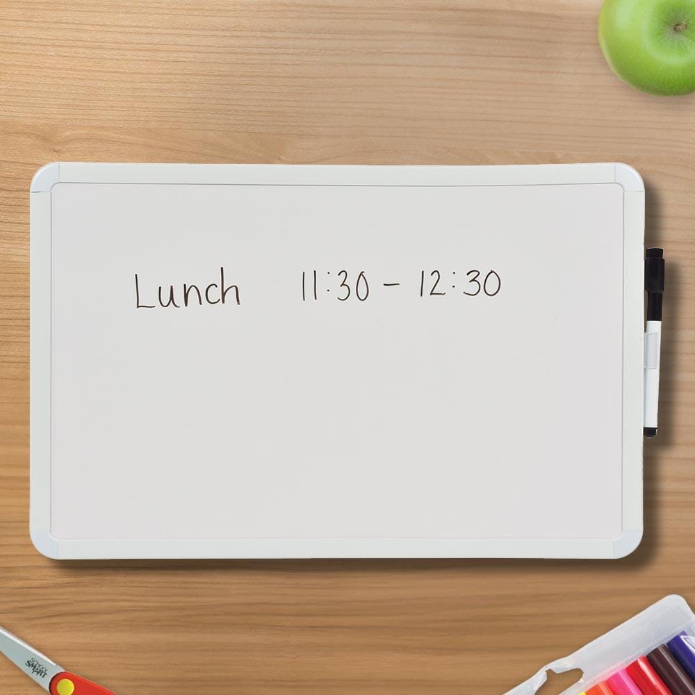 Our white framed whiteboard can be positioned vertically or horizontally when in use and mounted or adhered to walls or doors