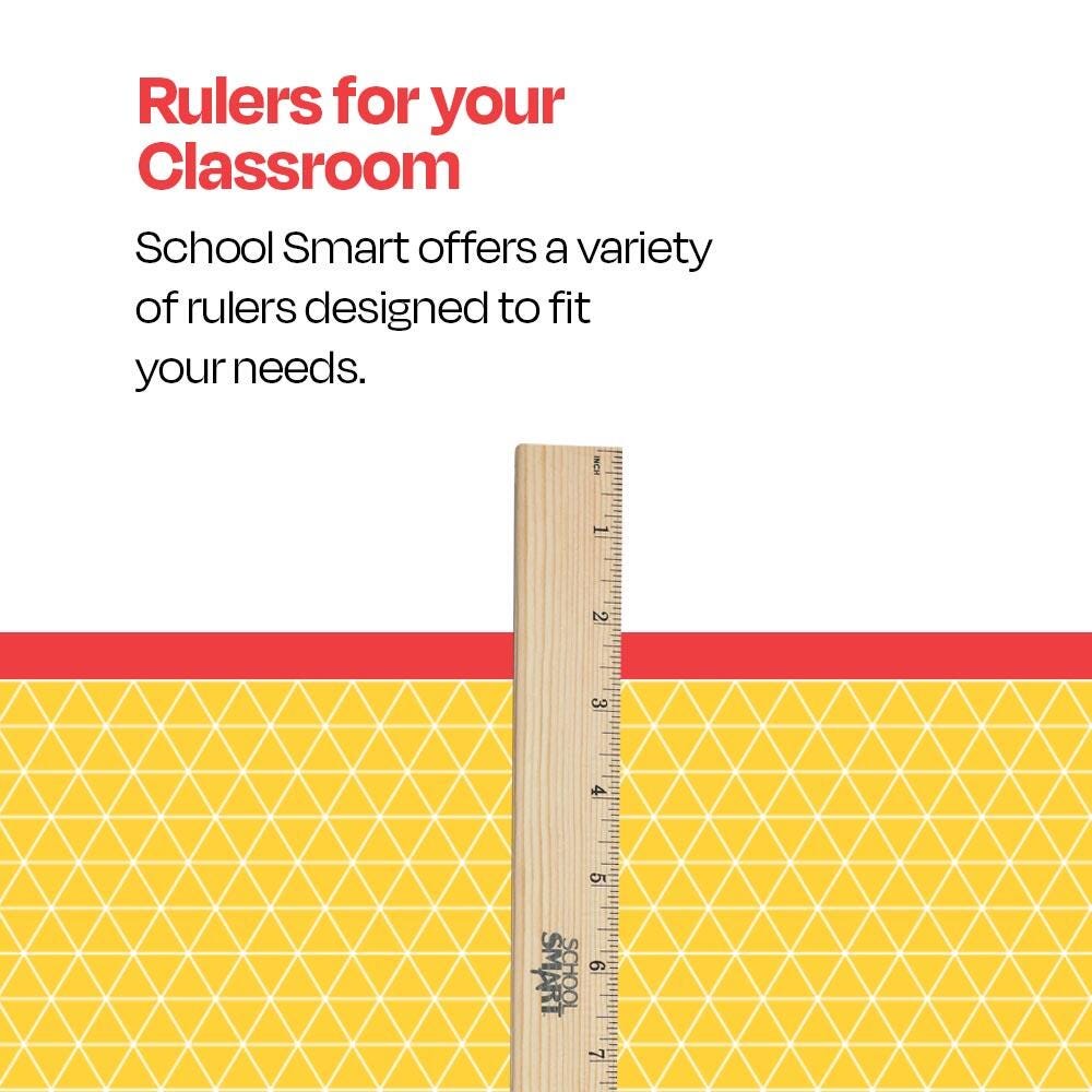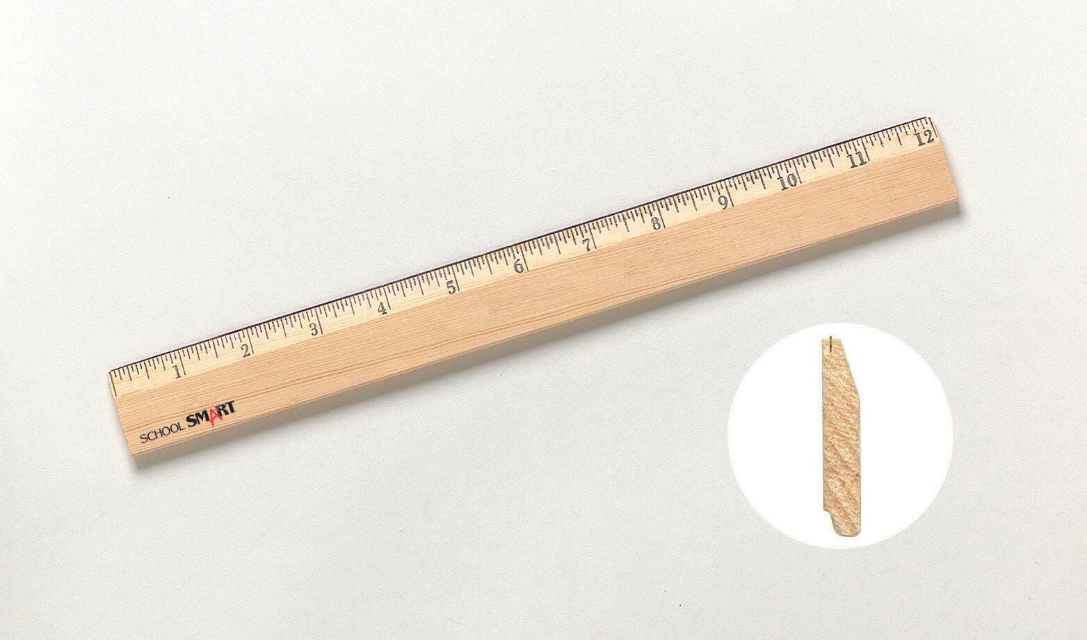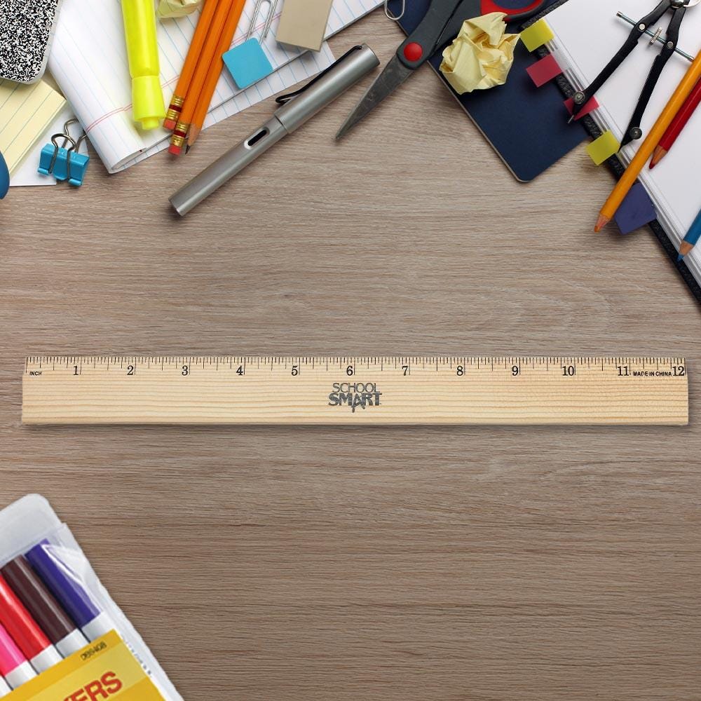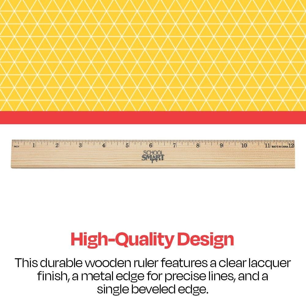 From office and home projects to drafting and math classes, the School Smart thick wooden ruler gives you the basics. A one-foot-long design features one side of 12 inch number markers and clearly delineated 1/16 inch marker lines in black. The classic wooden ruler also has a single metal edge for quality tracing or trim purposes. Choose our measuring instrument for professional or personal projects. The durable ruler stick is made of wood with a multiple-coat, clear lacquer finish for extra strength and long-lasting use.Features