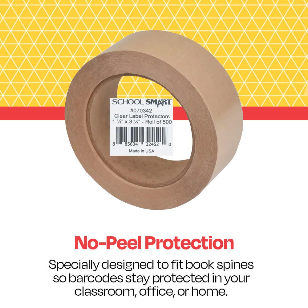 School Smart vinyl label protectors feature a rounded corner design that prevents lifting from a book's surface. Our 4 mil clear adhesive label protectors also have an acrylic adhesive backing that protects bar codes from damage, allowing accurate scanning. The high-quality seal and view label covers are non-glare and comply with book spines and gutters.