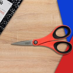 School Smart Small Precision Scissors, Stainless Steel Blade and Soft Grip, 5 Inches, Red