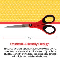 School Smart Straight Scissors, Stainless Steel Pointed Tip and Soft Grip, 7 Inches